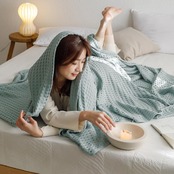 songlibing ワッフルケット 綿100% タオルケット クイーン200*230cm ブランケット 夏用 冷房対策 キルトケット おしゃれ 無地 洗える 寝具 ブルー