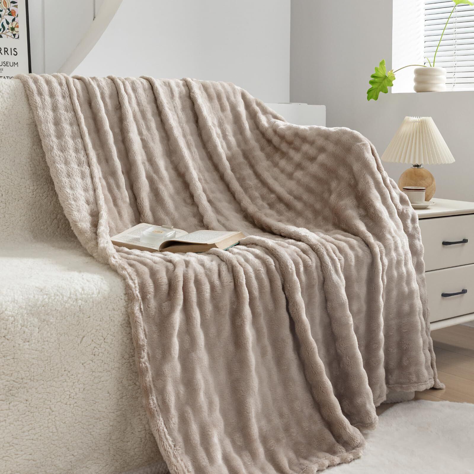 【ふわふわの優しい触感】高級感あふれるラビットファー調の素材を使用したこの毛布は、ふんわりとしたなめらかな肌触りがポイントです。まるで猫の毛をなでるような心地よさで、ずっと触りたくなる感触があなたに癒し感をもたらします。