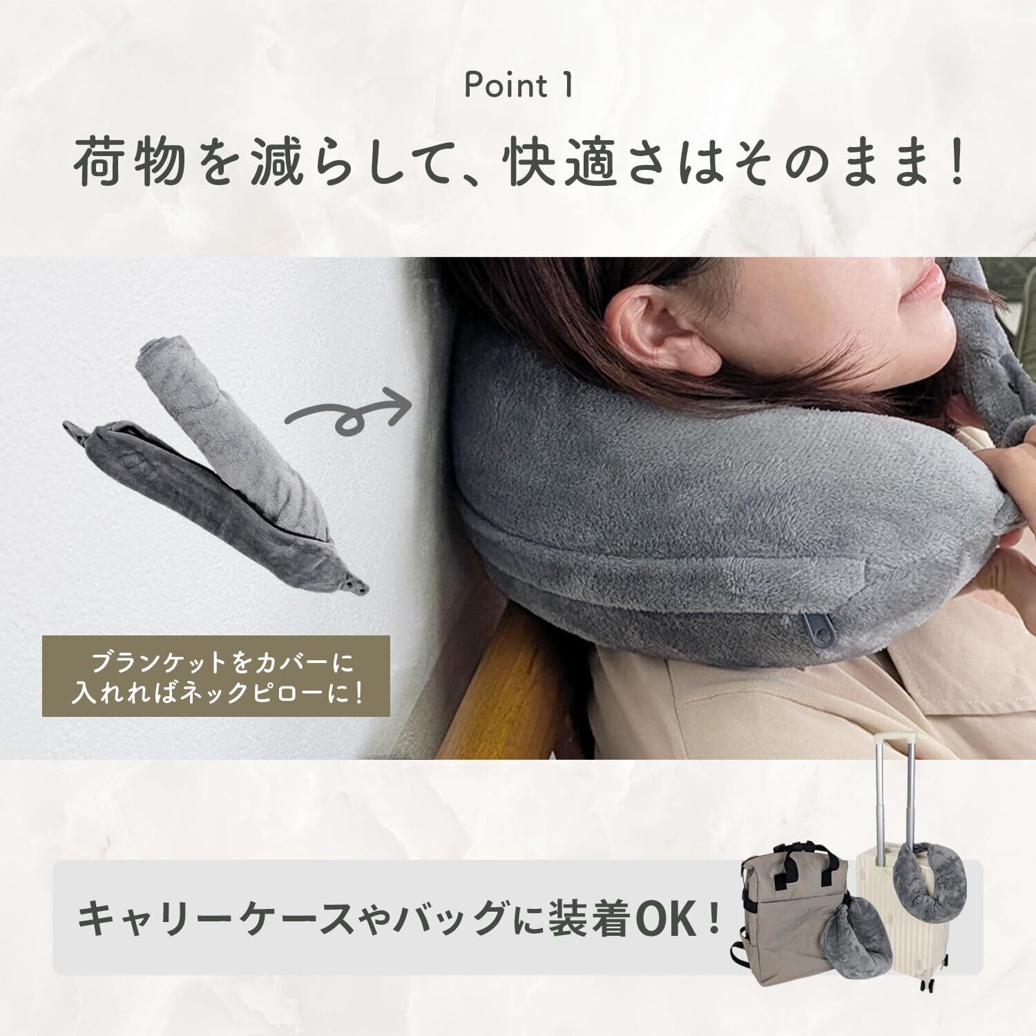 【ブランケット&ネックピローが1つに!2WAY仕様】 ブランケットとして使った後は、くるくる巻いてカバーに入れるだけでネックピローに早変わり!旅行や移動中に大活躍の多機能アイテムです。
