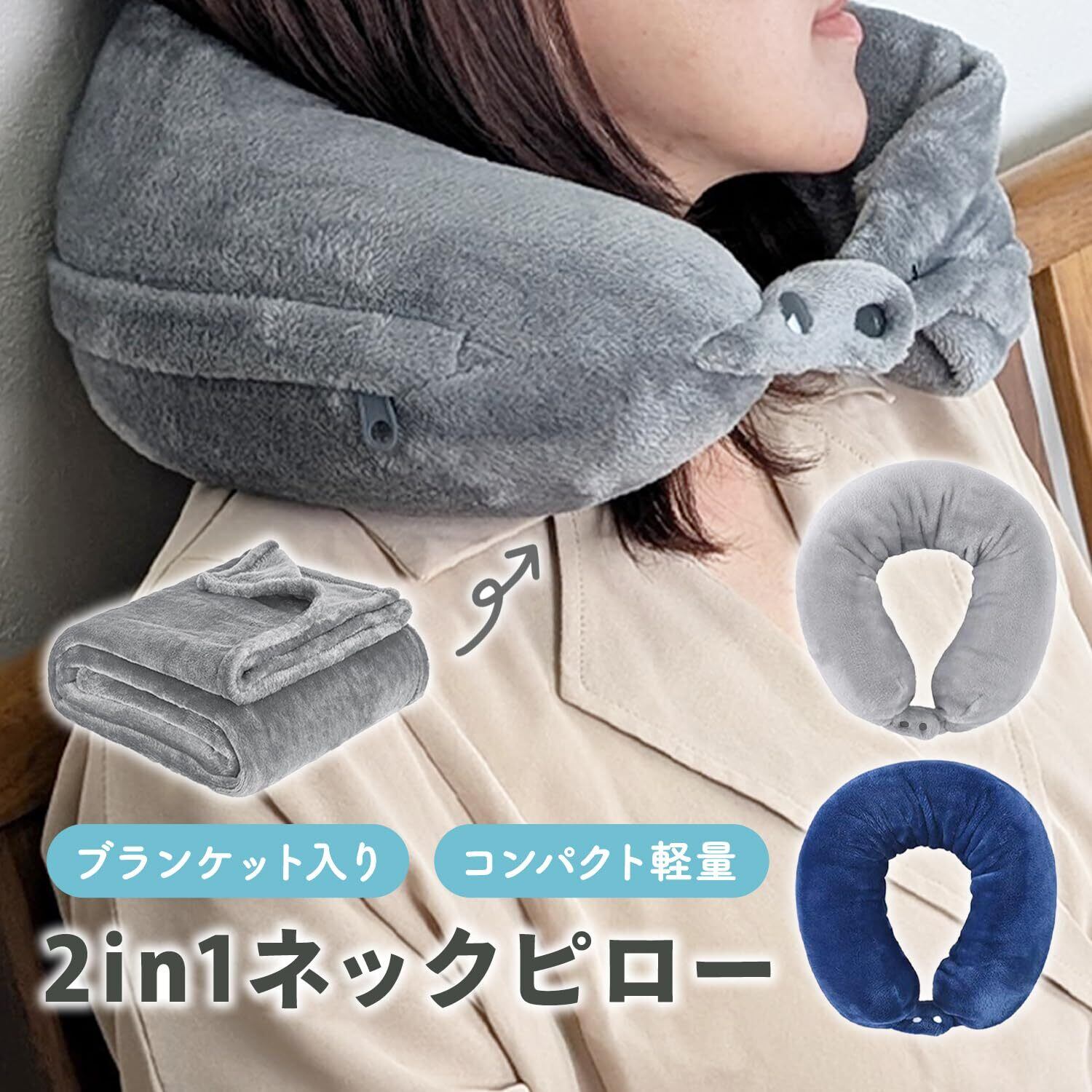 [MRG] 2in1 ネックピロー 枕 ブランケット付き 旅行用 枕&ひざ掛け コンパクト収納 多機能 携帯便利 機内 新幹線 車内 オフィス 仮眠 防寒 トラベルピロー 飛行機用 洗濯OK (グレー)