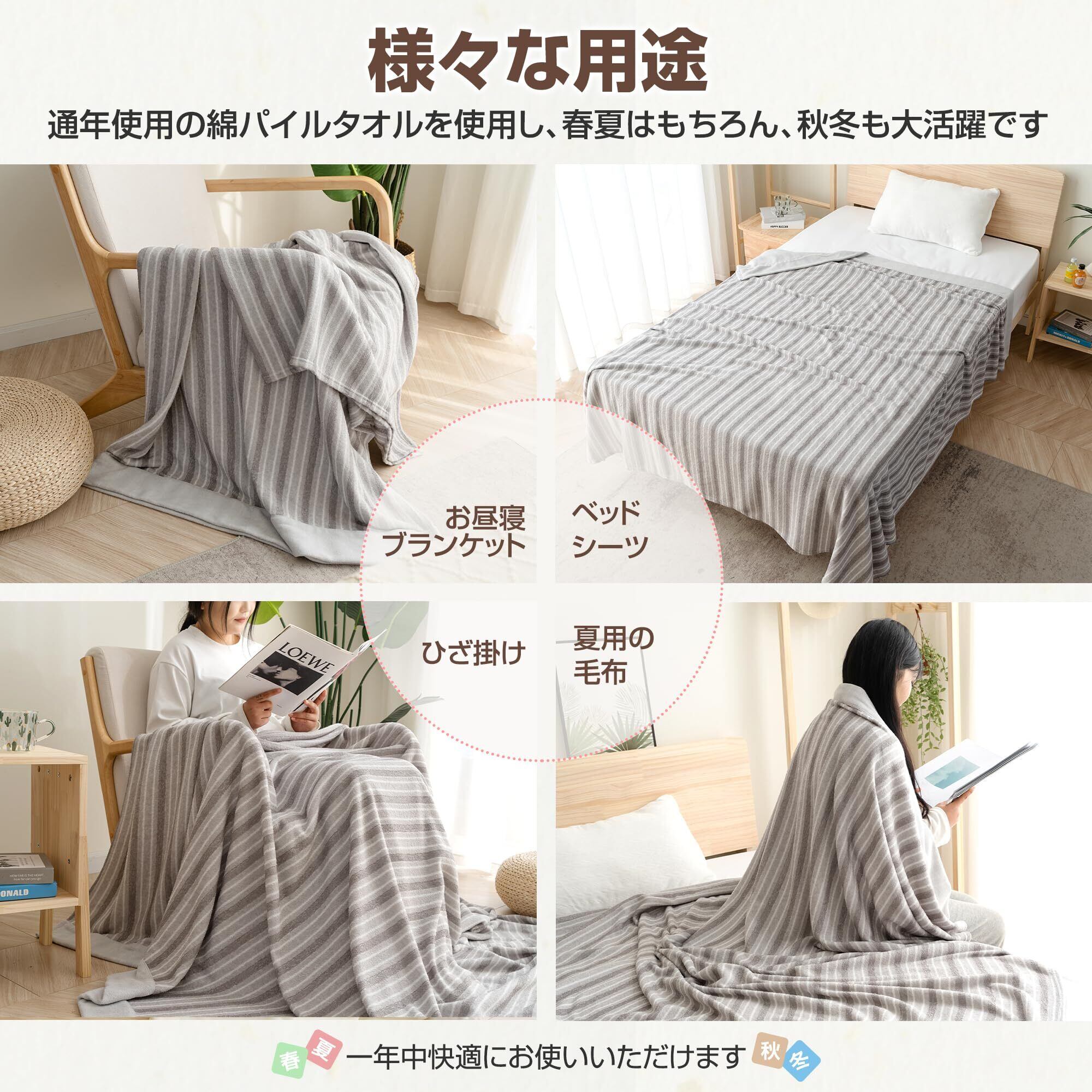 【オールシーズン使える】1年中活躍してくれるタオルケット。通年使用の綿パイルタオルを使用し、春夏はもちろん、秋冬も大活躍です。軽くてふわっとした掛け心地の軽量タイプので、押入れにもすっきり収納できます。1枚で使うだけではなく、他の寝具と組み合わせることでも効果を発揮します。
