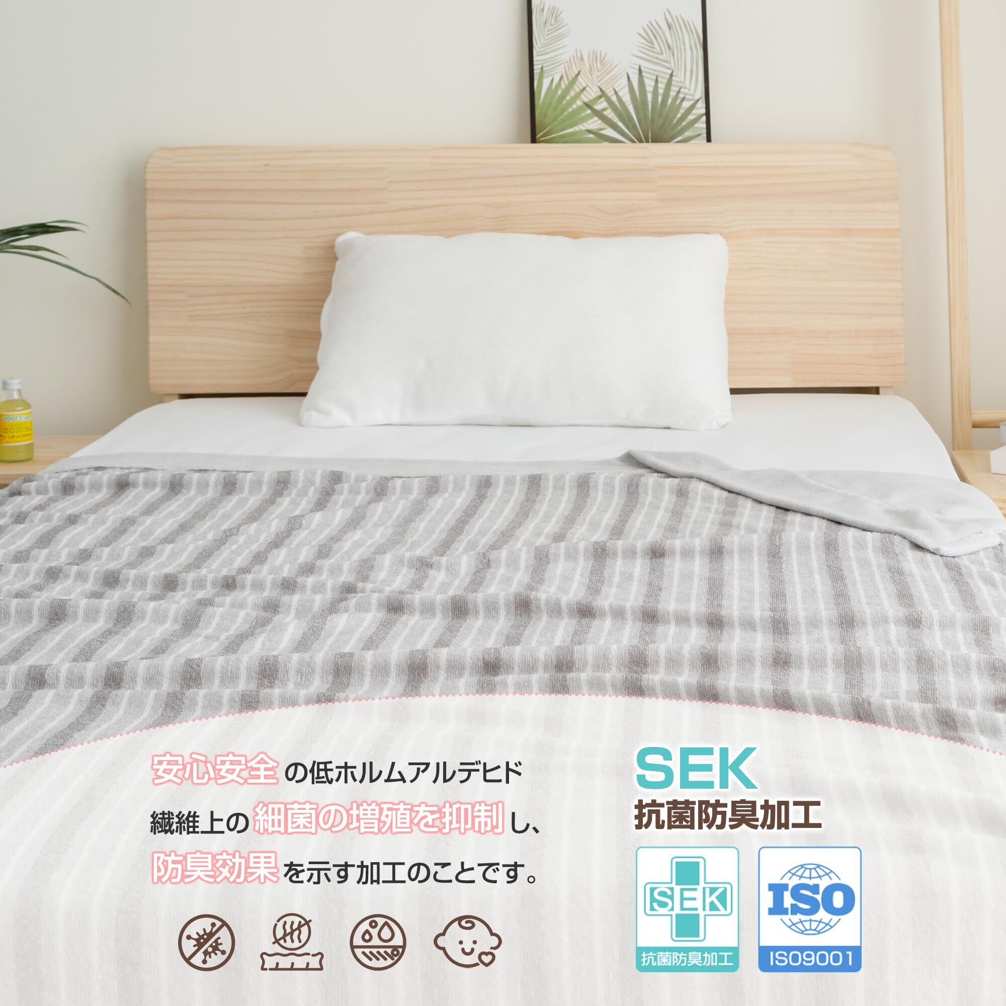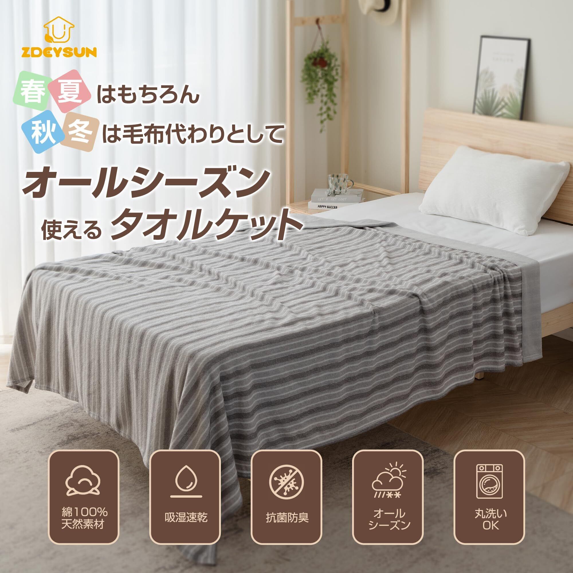 Zdeysun タオルケット シングル 綿100% キルトケット 肌掛け ブランケット オールシーズン 吸湿速乾 抗菌 防臭 防ダニ 通気性 柔らかく肌触り 天然素材 軽量 リバーシブル 洗える ソファー用 シーツカバー 毛布 ふんわり さらさら グレー 140*200cm
