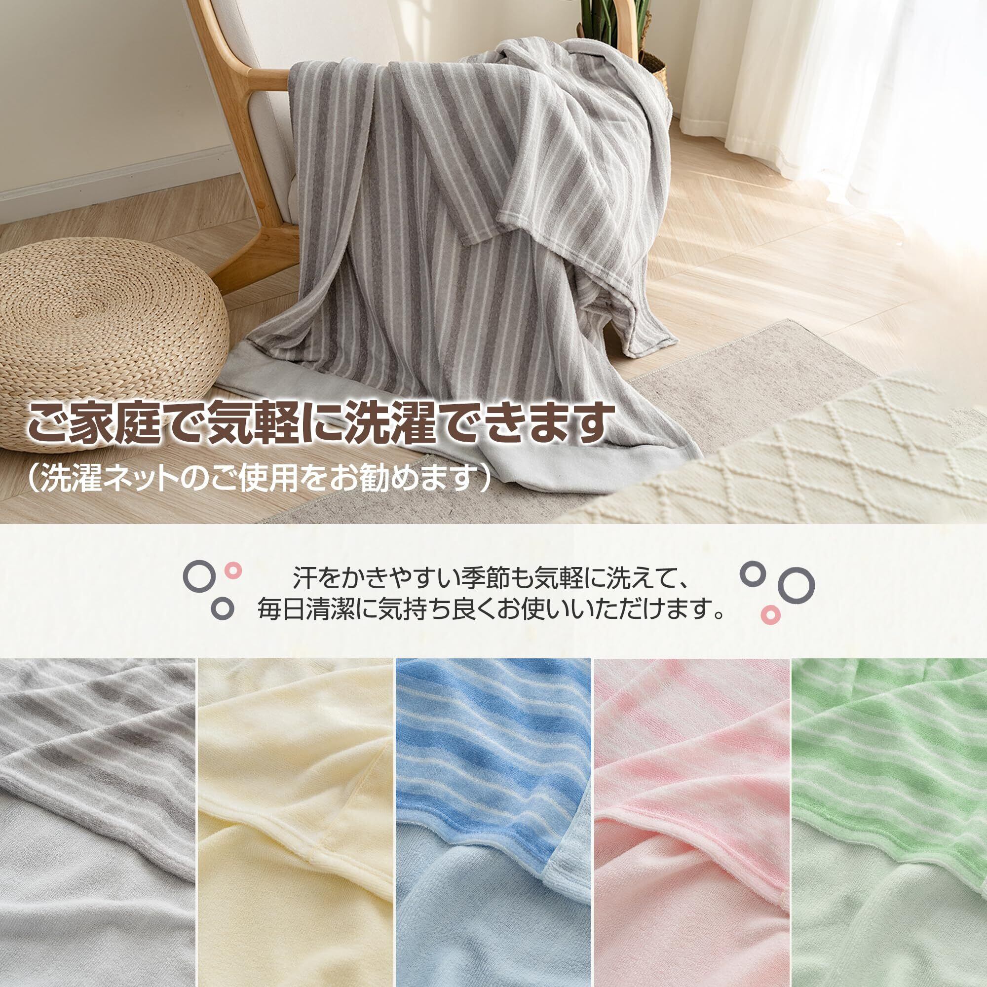 【丸洗いできるので、いつも清潔】タオル生地の魅力は乾きが速くて、ご家庭でも簡単にお洗濯が可能です。いつも清潔でふわふわな使い心地をお楽しみ下さい。何回洗濯しても色褪せない上品なタオルケットです。(※長くお使いいただくために、洗濯ネットをご使用ください)