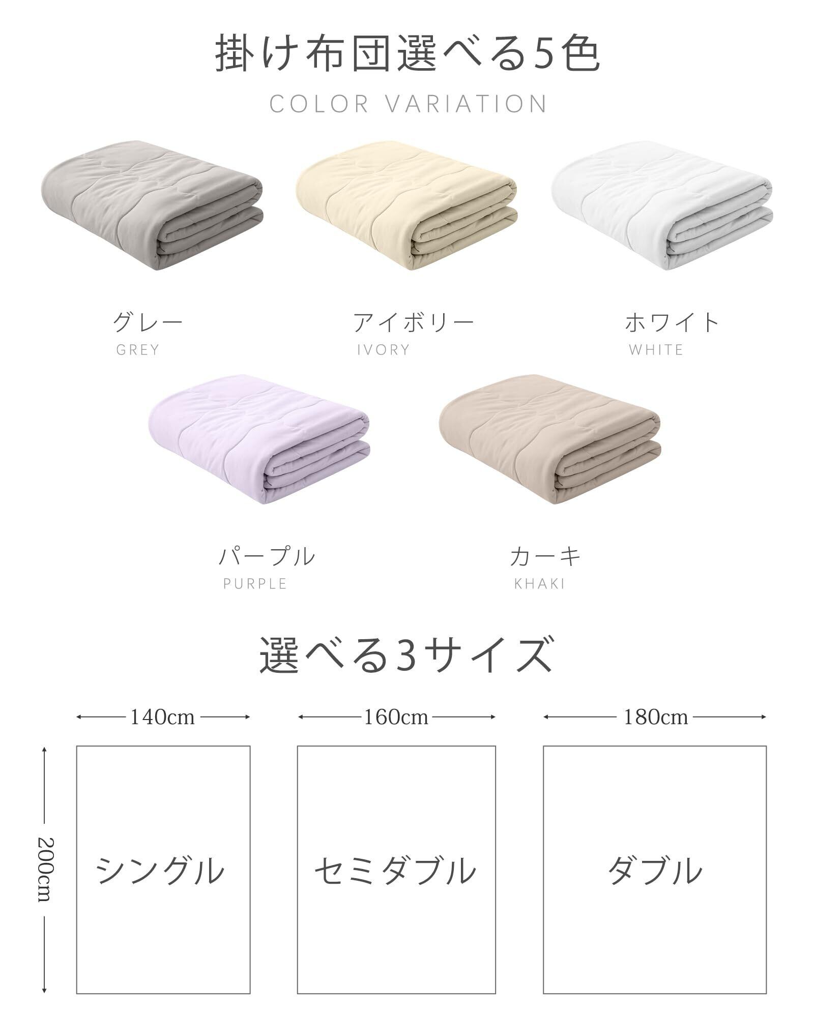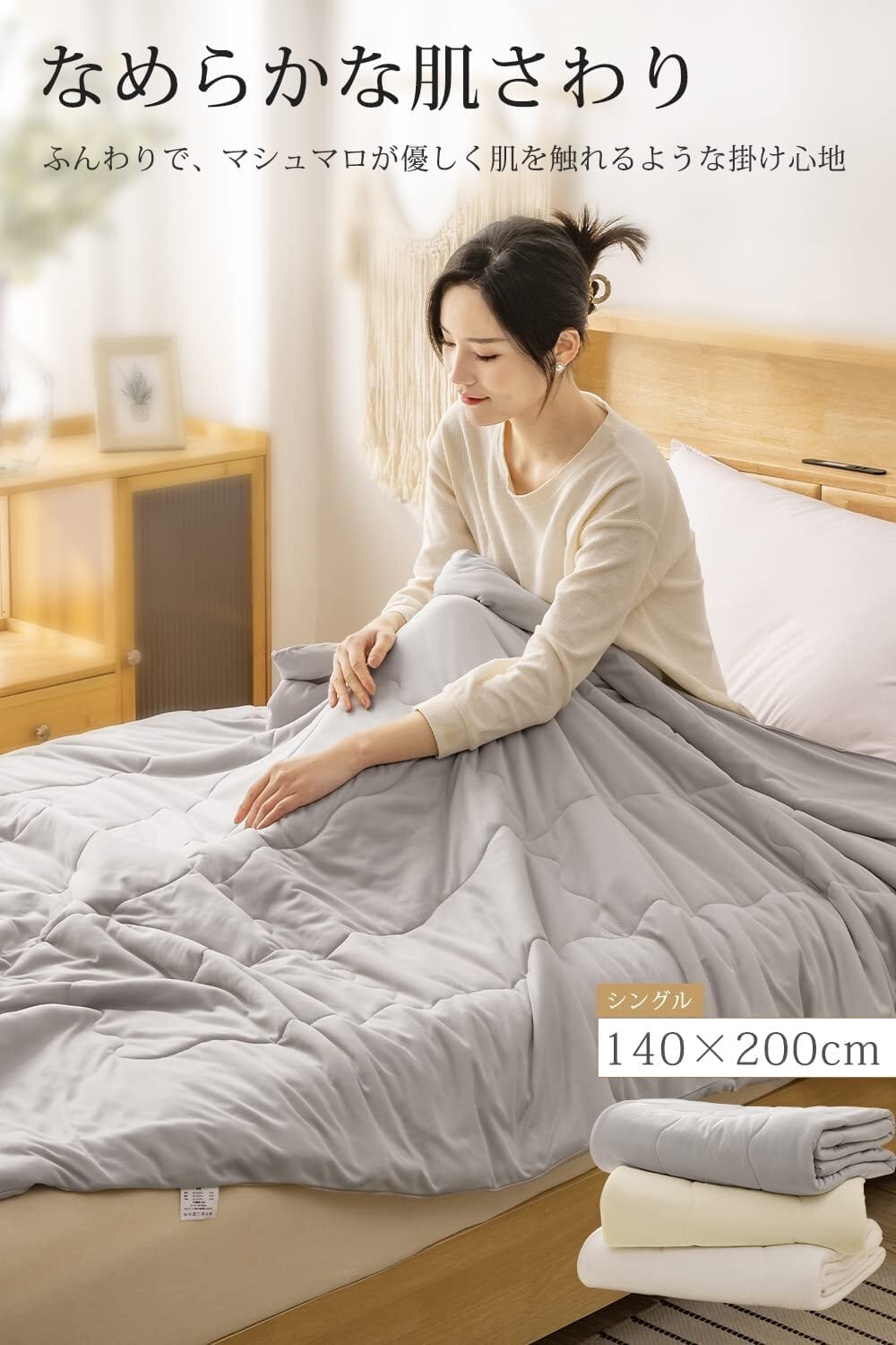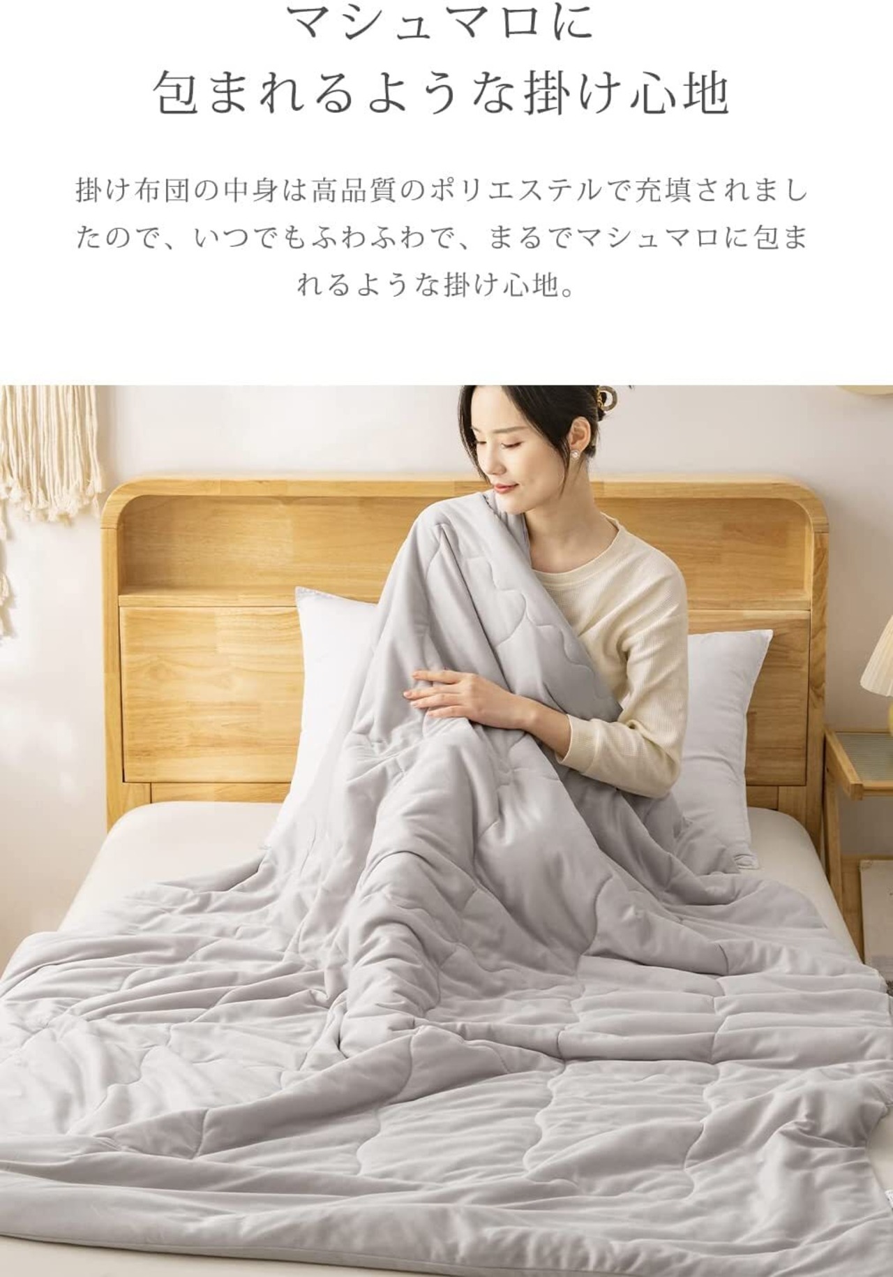 【究極の肌触り】この肌掛け布団は、ポリエステル100%の生地で作られており、肌に優しくフィットします。まるで軽い羽毛のような感触が特徴で、毎晩の睡眠を快適なものに変えてくれます。