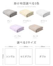 【軽やかで暖か】軽量ながらも保温性に優れた中空ポリエステル繊維を使用しており、暖かさをしっかりとキープします。夏はそのまま、寒い時期には他の布団と組み合わせても最適。軽やかながらもしっかりとした暖かさで、年間を通して快適にお過ごしいただけます。