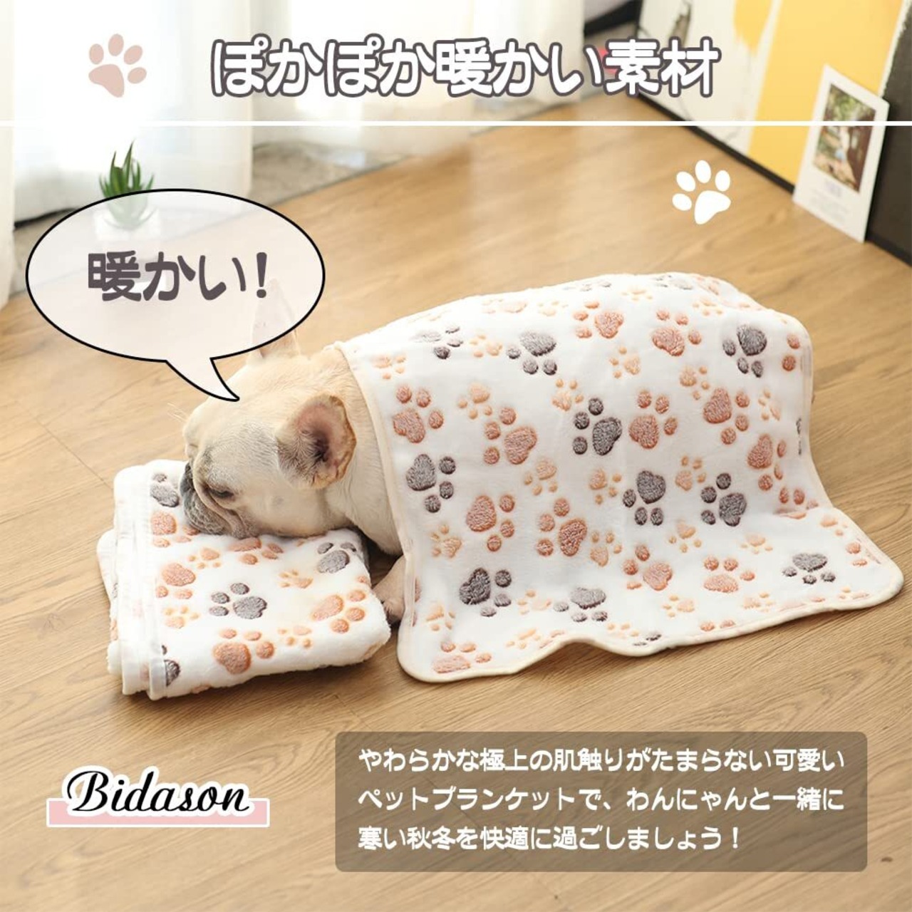 【ぽかぽか暖かい素材】やわらかな極上の肌触りがたまらない可愛いペットブランケットで、わんにゃんと一緒に寒い秋冬を快適に過ごしましょう!両面毛足が長く心地よいサンゴフリース生地を採用しており、リバーシブル使用可能、ソフトな繊維を起毛させているので、ふわふわの手触りが気持ちよく、温い空気をたっぷり含むことにより、暖かく厳寒を乗り越えられるタオルケットです!通気性がいい特徴で、季節を問わずオールシーズンにもお使いいただけます。