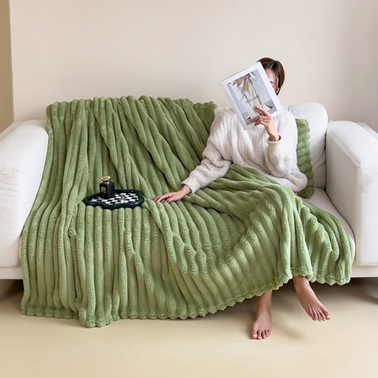 ブランケット フランネル柔らかいふわふわ毛布 シングル軽量掛け毛布 おしゃれ大判洗えるマイクロファイバー厚手 吸湿発熱 静電気防止 冷房対策防寒暖かいひざ掛けブランケット防ダニ 抗菌 防臭 オールシーズン。グリーン長さ150cm×幅さ100cm
