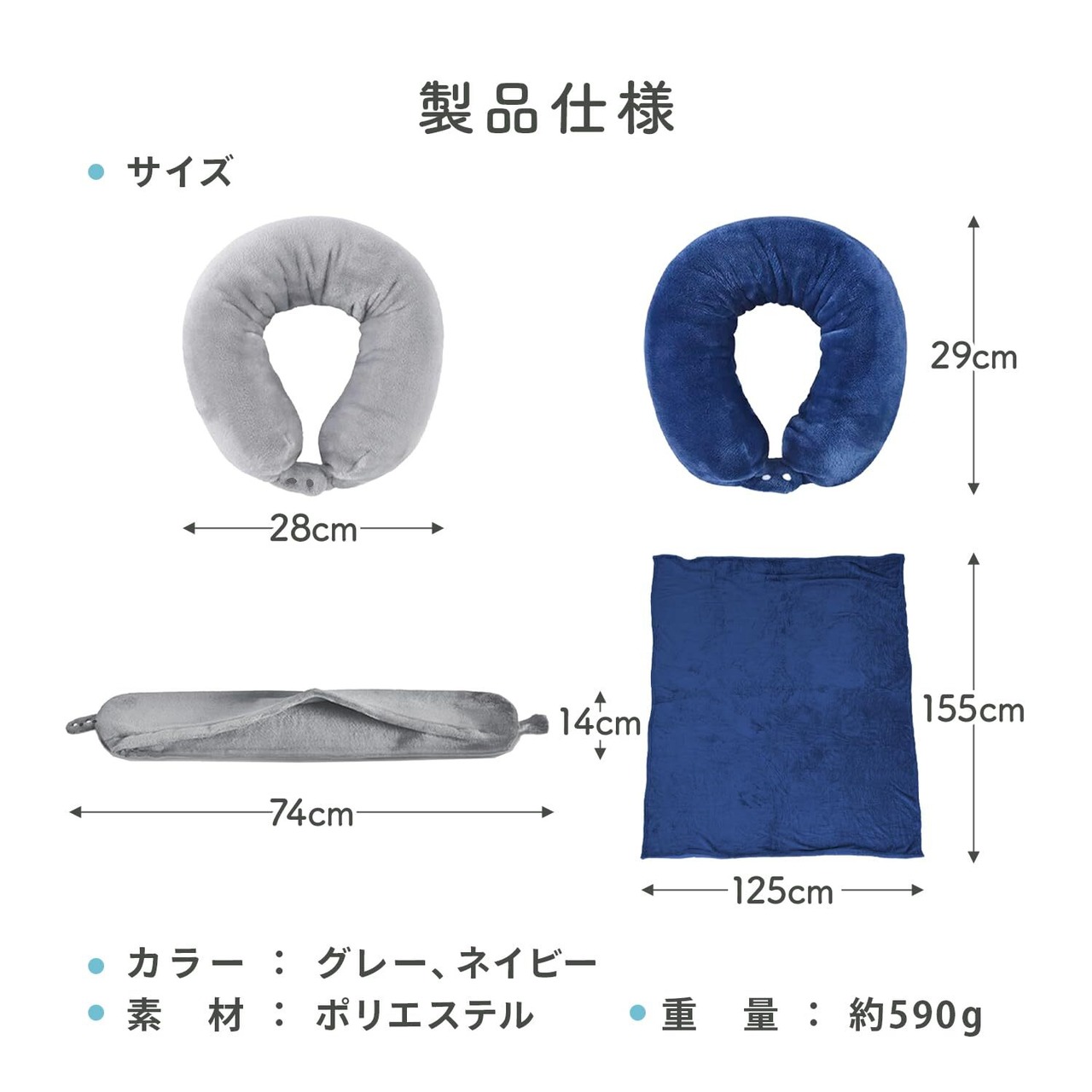 【サイズ】ネックピロー:28×29×14cm、ブランケット:125×155cm、重量:590g【仕様】首枕とブランケットの2in1仕様【素材】ポリエステル