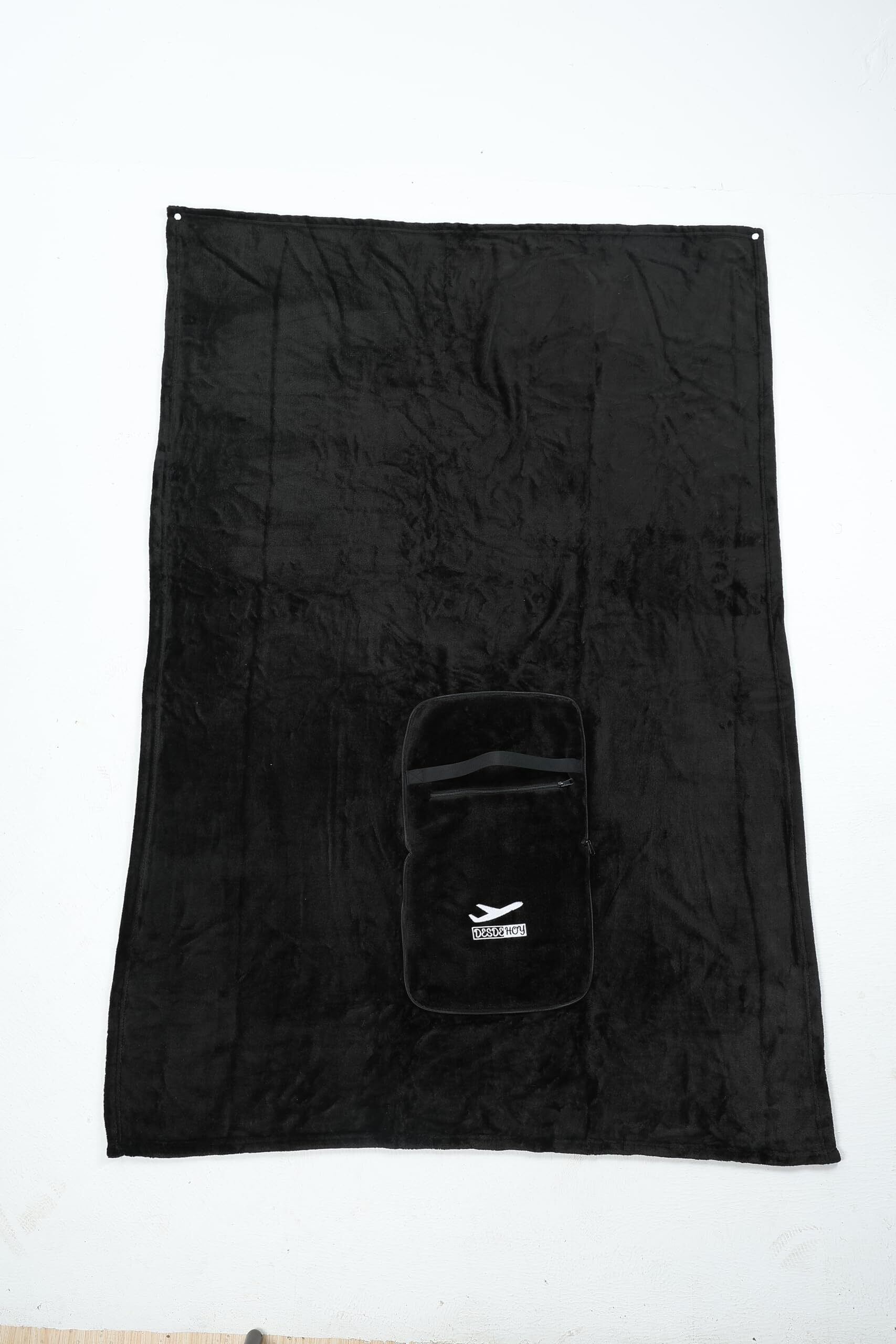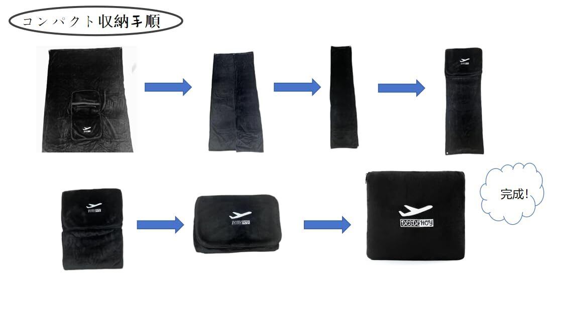Desde Hoy ブランケット 毛布 枕 マント ケープ コンパクト 旅行用 飛行機 電車 防災 柔らかい 静電気防止 四季適用 キャンプ ハイキング ペット用 便利 携帯 ポケット付け スーツケース適用(ブラック140x100)