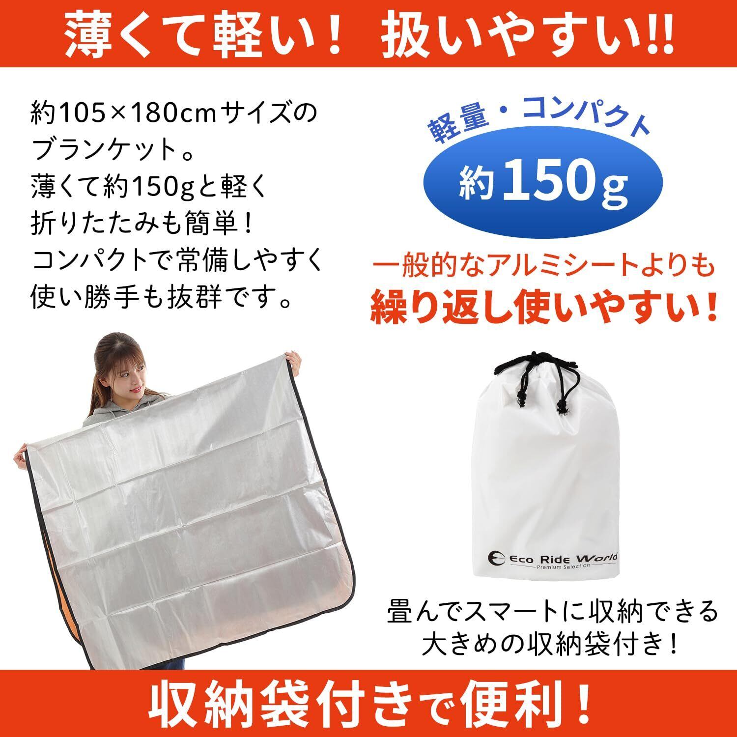 緊急非常時や災害時、スポーツ観戦時などにブランケットの代用としてご使用いただける、カサカサ音が少ない、コンパクトなアルミ4層ブランケット( サバイバルシート エマージェンシーシート EMERGENCY SHEET ) です。 急な気温変化や災害などの緊急時に対応するために開発されたアルミの簡易毛布保温シートです。 薄くて軽いので、防災リュック、車の中などに常備でき、持ち運びやすく場所を取りません。防災ガイドを付属しており、非常持出品チェックリストや緊急ダイヤルなど災害への備えについて 必要な情報が提供されています。またコンパクトに収納できるよう専用の収納袋を付属しています。