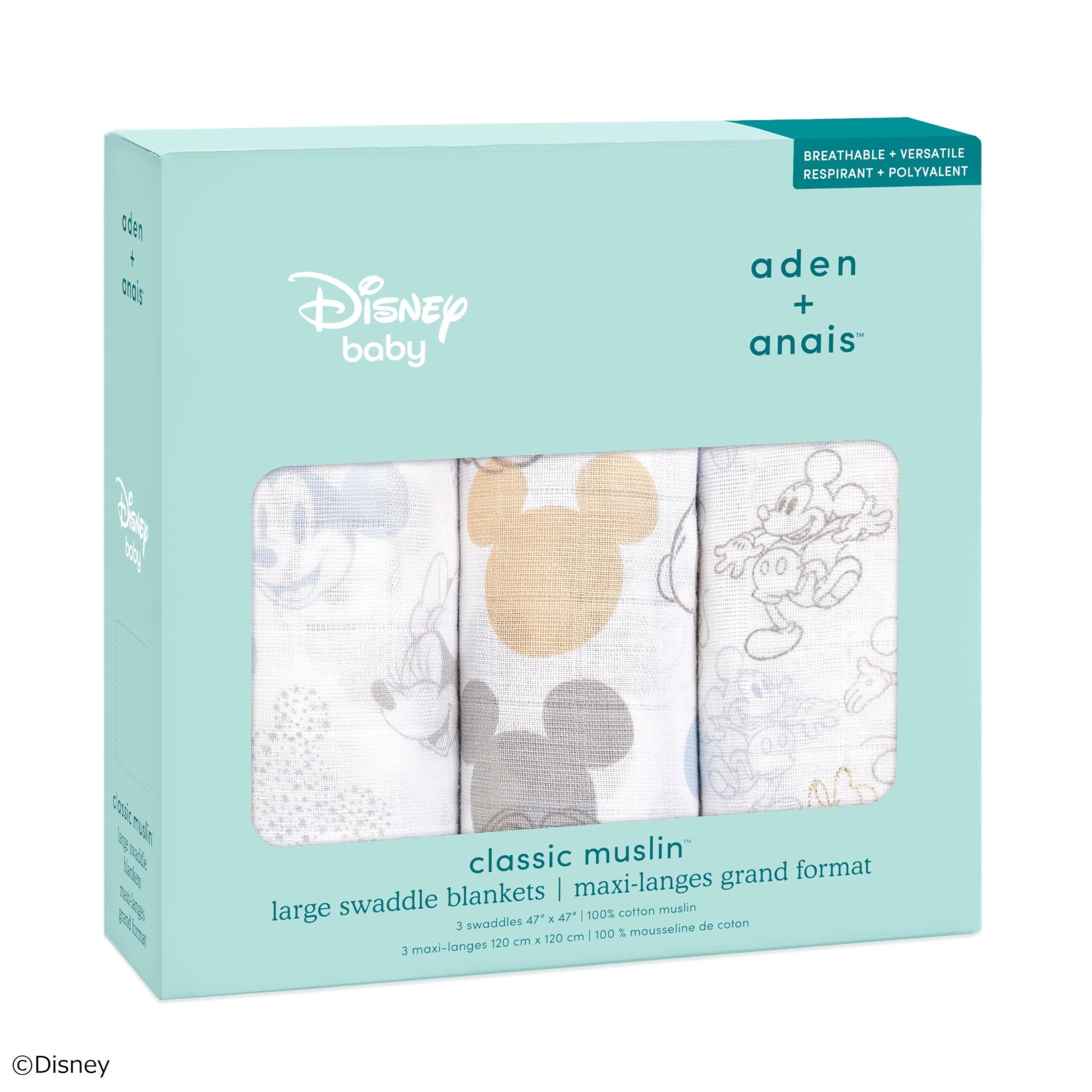 aden + anais エイデンアンドアネイ おくるみ ミッキー&ミニー 3枚セット 120×120cm ディズニー デザイン モスリンコットン 新生児 SWADABDASWC30003DIJ