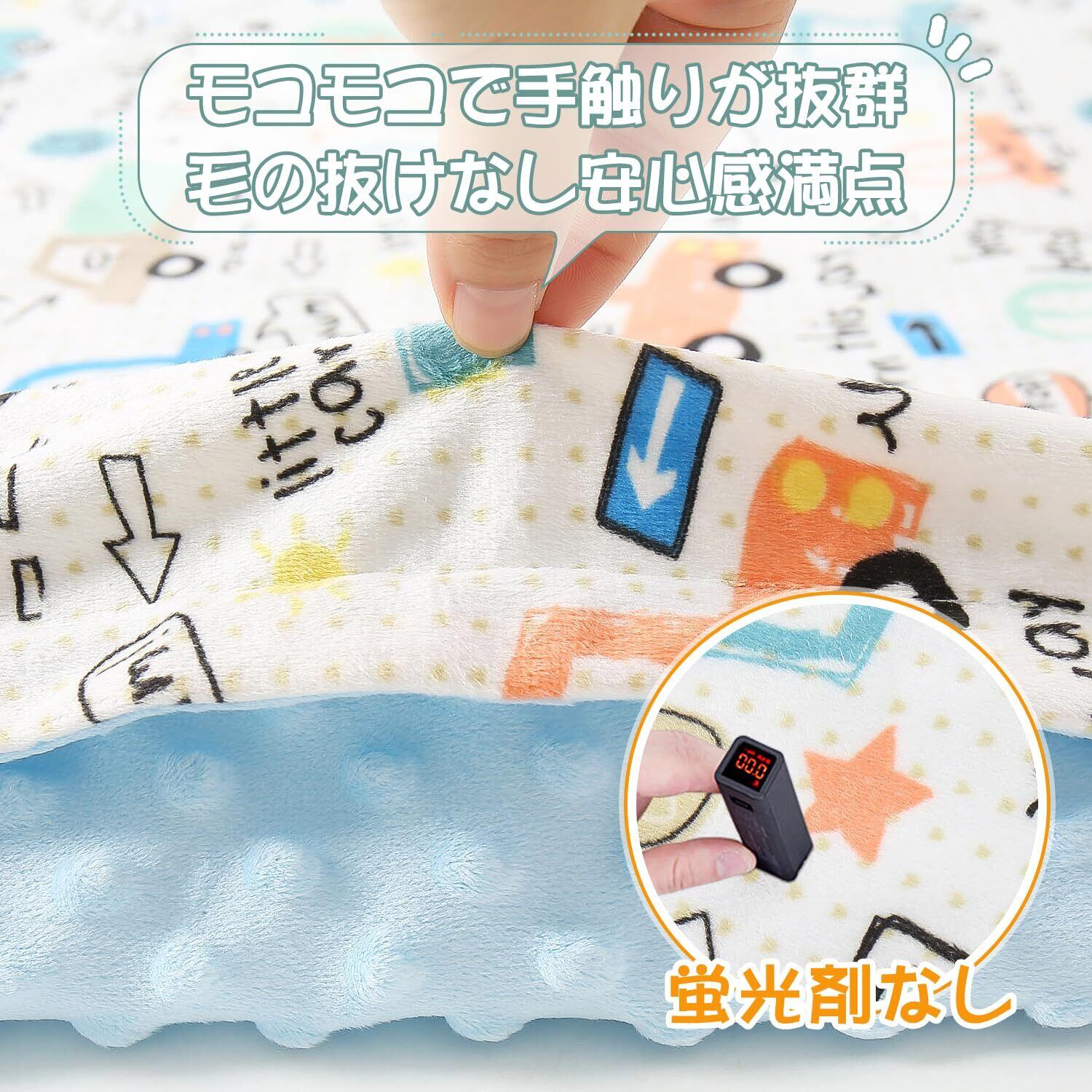 【ふわふわのベビー毛布】3Dスージングビーンズ両面デザインオールシーズに適しています、通気性よく柔らかさ満点で リバーシブルデザインは二種違う触感体験できます。表側は吸湿性、保温性に優れた高密度素材を採用し毛抜けなりません。 耐久性があり、繊細で柔らかく、滑らかな手触りです。裏側はのスーパーソフトビーンベルベットで作られており、赤ちゃんの繊細な肌に優しく触れます。