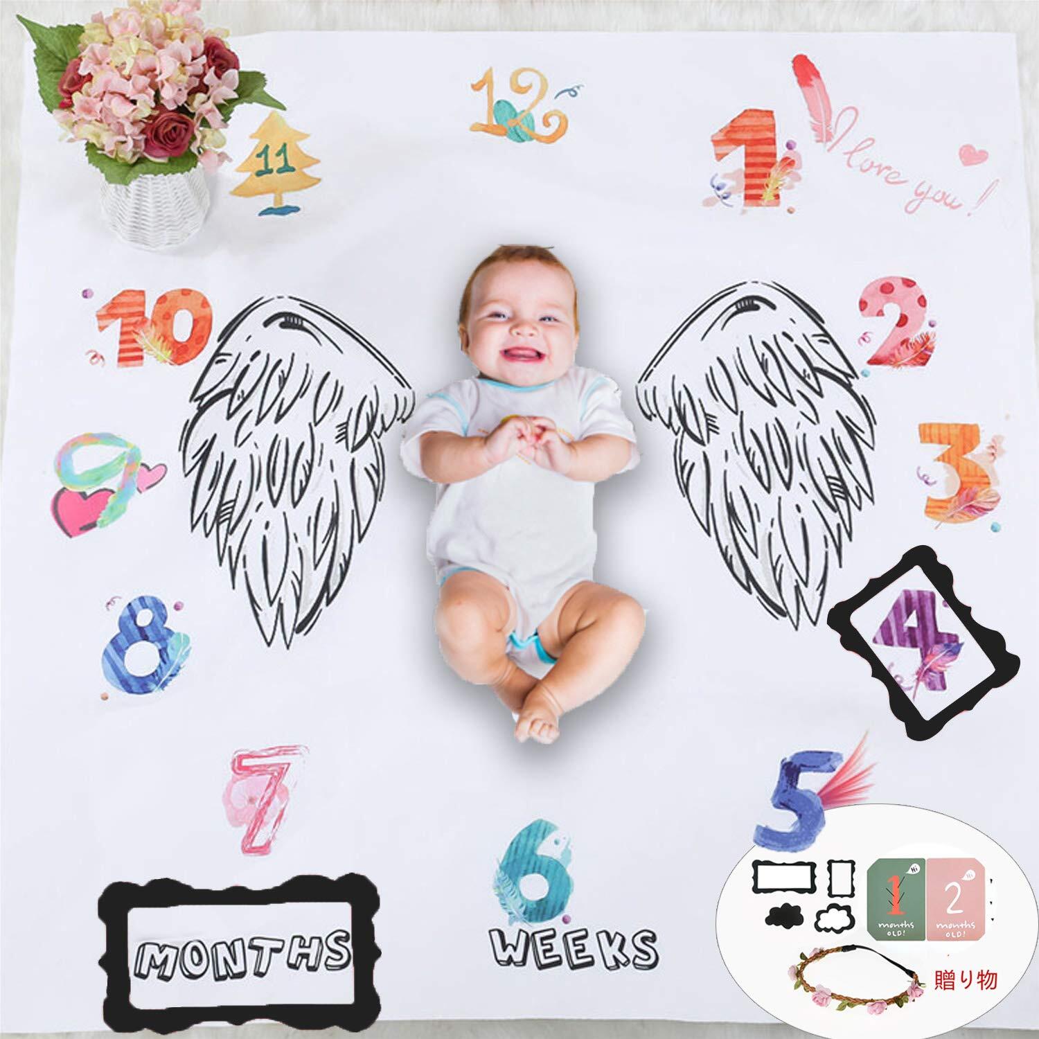 OMOTYA 寝相アート 月齢フォト ベビー撮影毛布 月齢フォトグッズ ベビー毛布 ブランケット ベビー 撮影記念 月齢フォトシーツ 寝相アート 女の子 男の子 百日記念 新生児プレゼント 誕生日 お祝い 出産祝い 子どもの成長の記録 100*100CM (天使)
