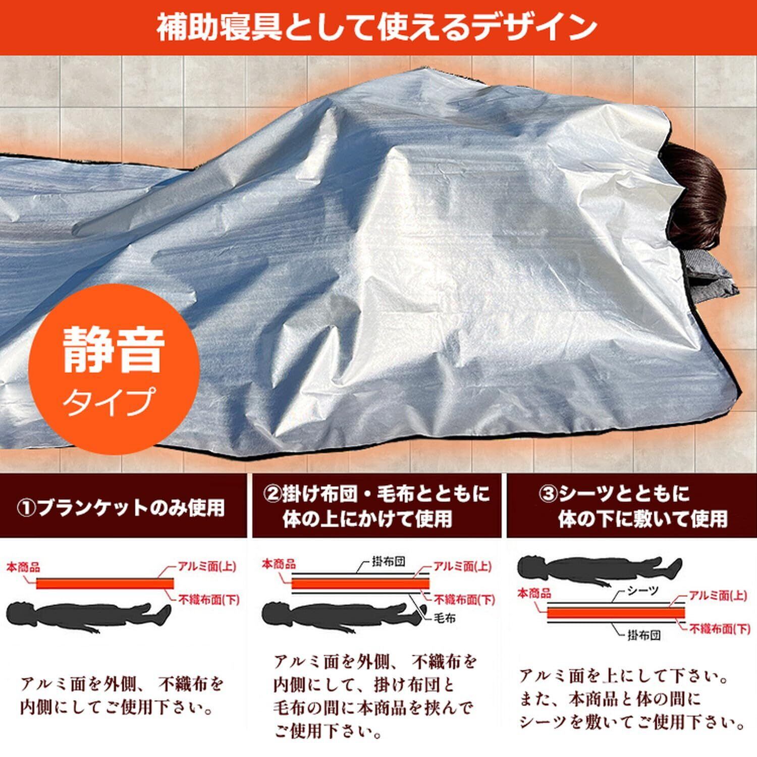 【ポイント3 補助寝具としても使用できる】 掛け布団と毛布の間に敷く事で保温力アップします!急な冷え込みにも安心です 毛布、寝袋やブランケットの代わりとしても、体温を保持する為にご使用頂けます 寒い場所でも安心防寒用としてアウトドアやレジャーにも最適です