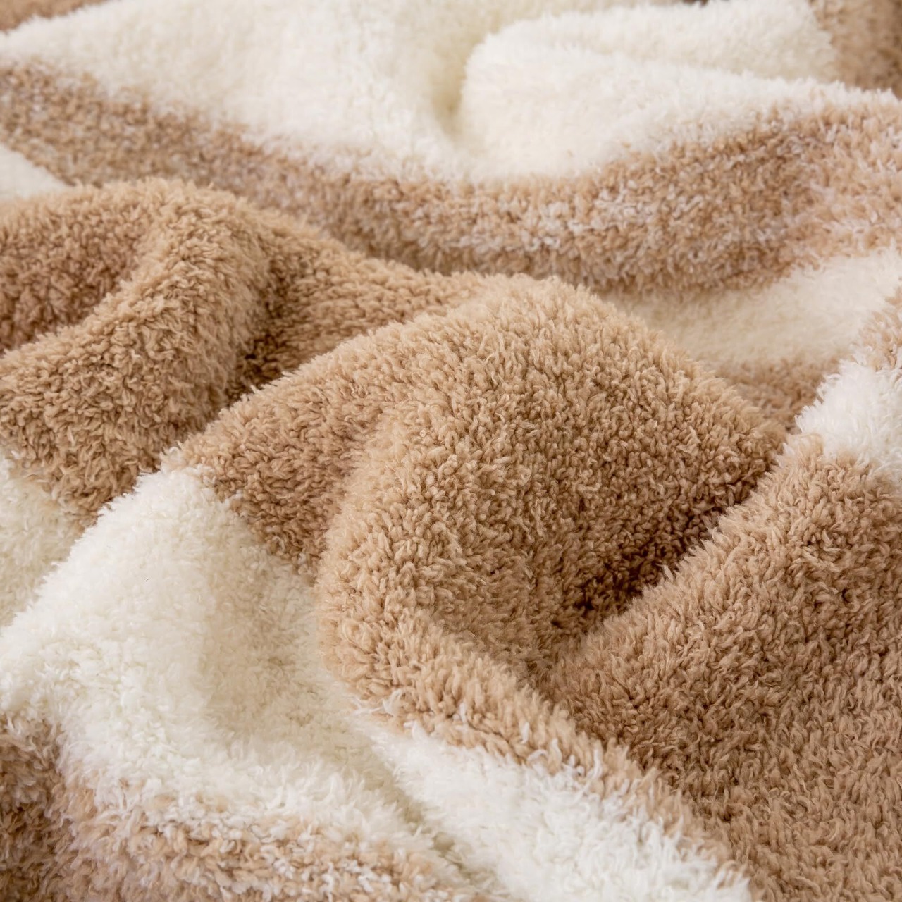 Mokoya おしゃれ ブランケット 大判 ふわもこ 毛布 夏用 タオルケット シングル 可愛い 掛け毛布 膝掛け 大判 プレゼント (ベージュ, 130x180cm)