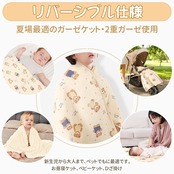 【ダブルガーゼ使用】ダブルガーゼ使用を使用し、高密度な織り方で毛抜けなく、耐久性が高くなります。ガーゼ特有の通気性と柔らかさが満点です。吸湿性が強い速乾性も強い、滑らかな手触りです。コットン製で基本的に肌あたりが優しいガーゼケットですが、赤ちゃんのデリケートなお肌の人にコットンで作られたガーゼケットがおすすめ。