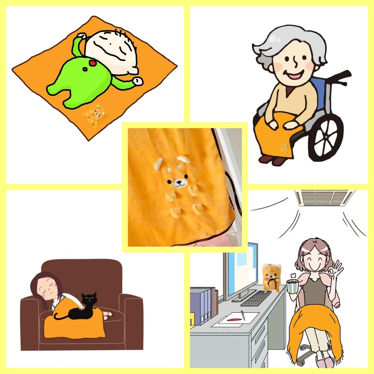 ぬいぐるみとひざ掛けの2通りで使用できるので、とても便利にお使いいただけます。冬の防寒対策としてはもちろん、夏のエアコン対策としてのひざ掛けとしてオールシーズン大活躍してくれるアイテムです。