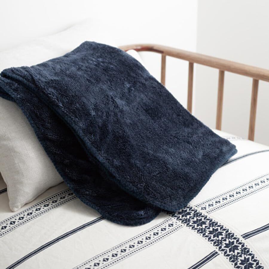ボアと起毛、2枚合わせ生地のあたたかなブランケットです。