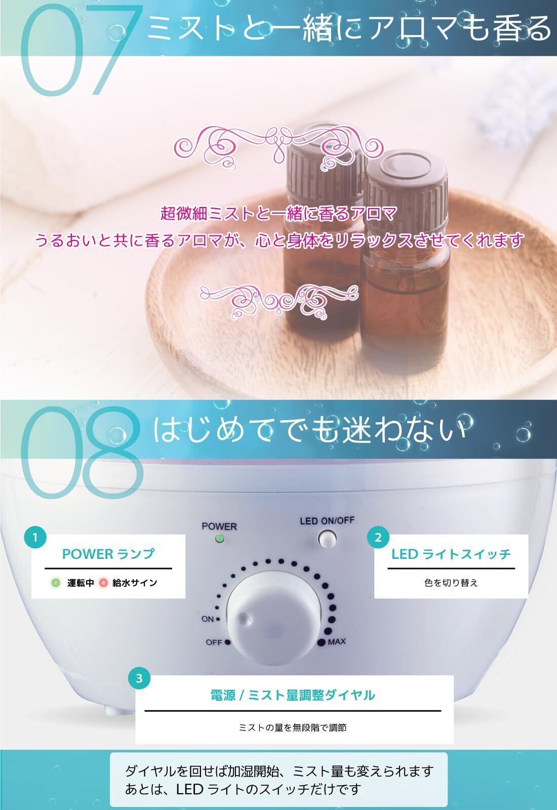 手に触れても安全な、非加熱による常温ミストは空気を汚しません。熱を加えない常温ミストなので手に触れても濡れるだけ、安全設計なので火傷の心配もありません。さらに、抗菌フィルターを経由しているので空気を汚しません。 ※ 空気清浄機 PM2.5反応につきまして:空気清浄機の検知機能は捕獲物質サイズを判断し表示されることから、加湿器のミストにより誤検知する場合があります。 このような場合は製品間の距離を充分に離したうえでご使用ください。