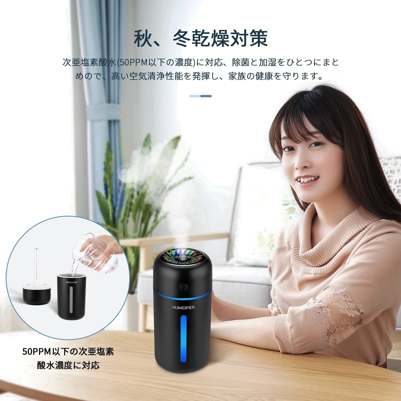 加湿器 卓上 家全体用加湿器 デスク 小型 車用 350ml 大容量 超音波式 次亜塩素酸水対応 空焚き防止 静音 コードレス 気化式 スチーム式 乾燥 花粉対策 車載 フィス 寝室 アロマ ミニ プレゼント 車
