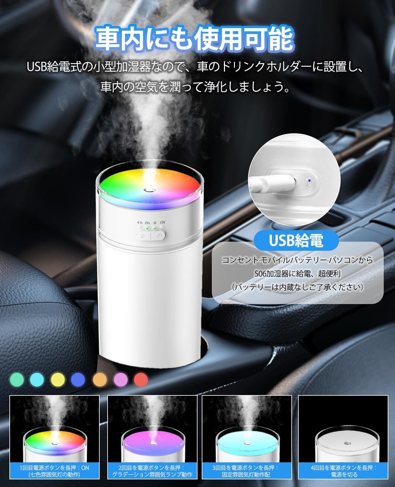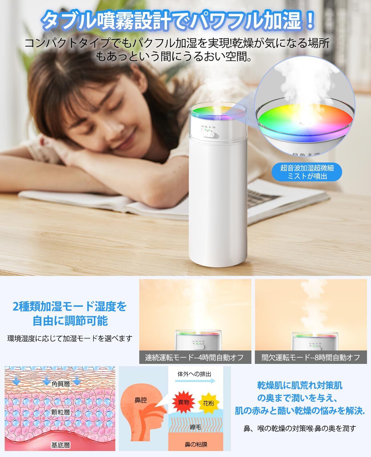 Gegizun 加湿器 卓上 小型 超音波式 Type-C給電式 500ml大容量タンク ムードライト【2025年新 タイマー機能】車載 静音 持ち運び便利 乾燥対策 花粉対策 節電対策 省エネ 水漏れ防止 長時間運転 自動停止機能 デスク オフィス 子供部屋 寝室 リビング 家庭用 白