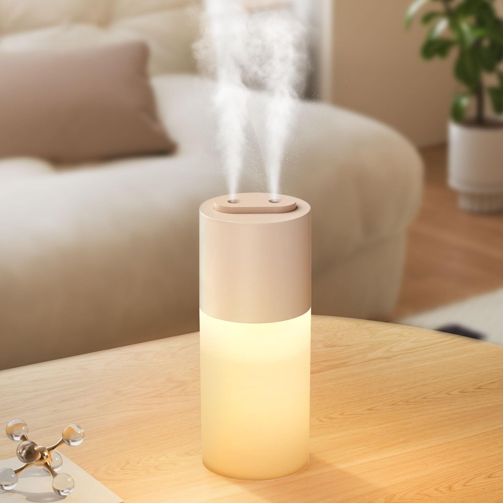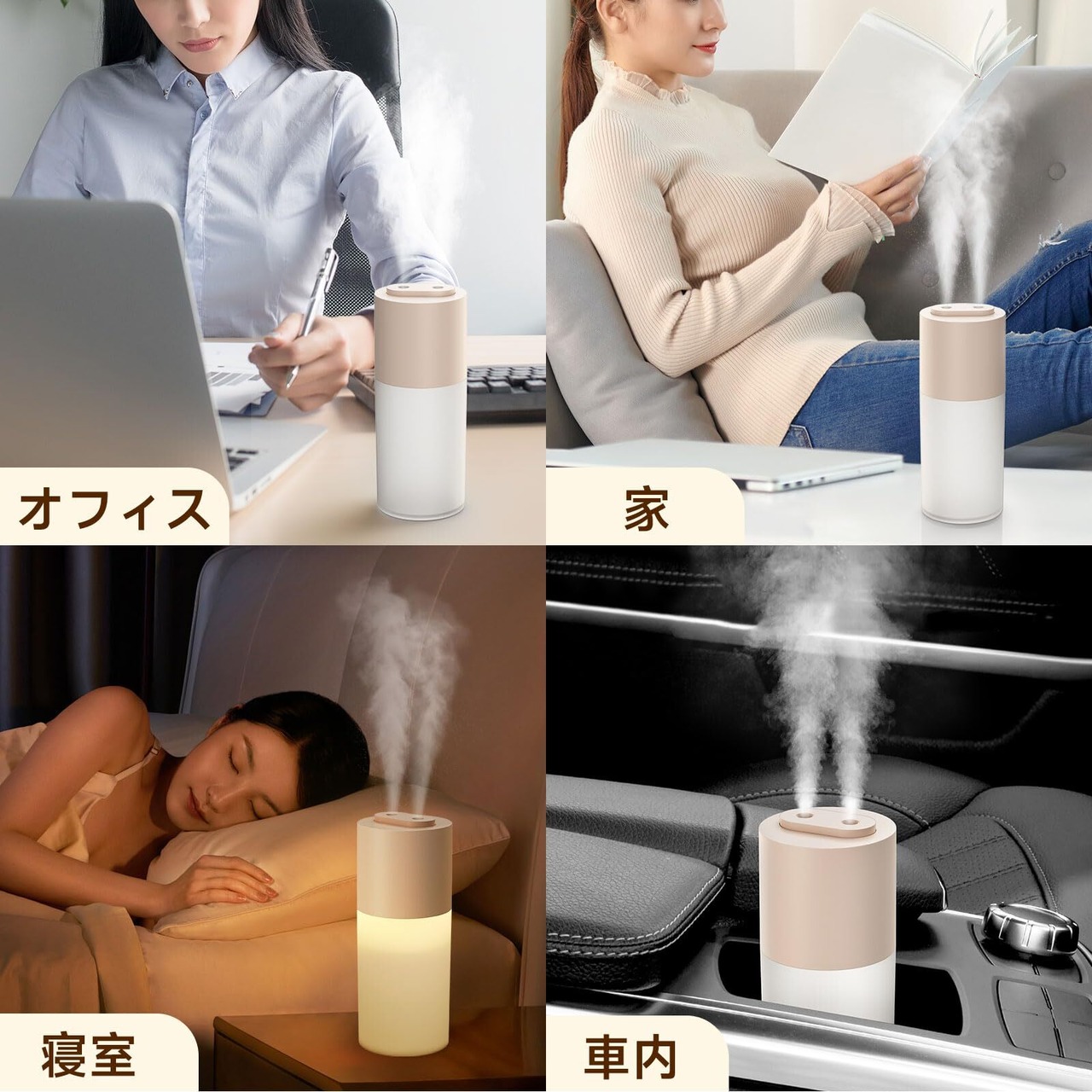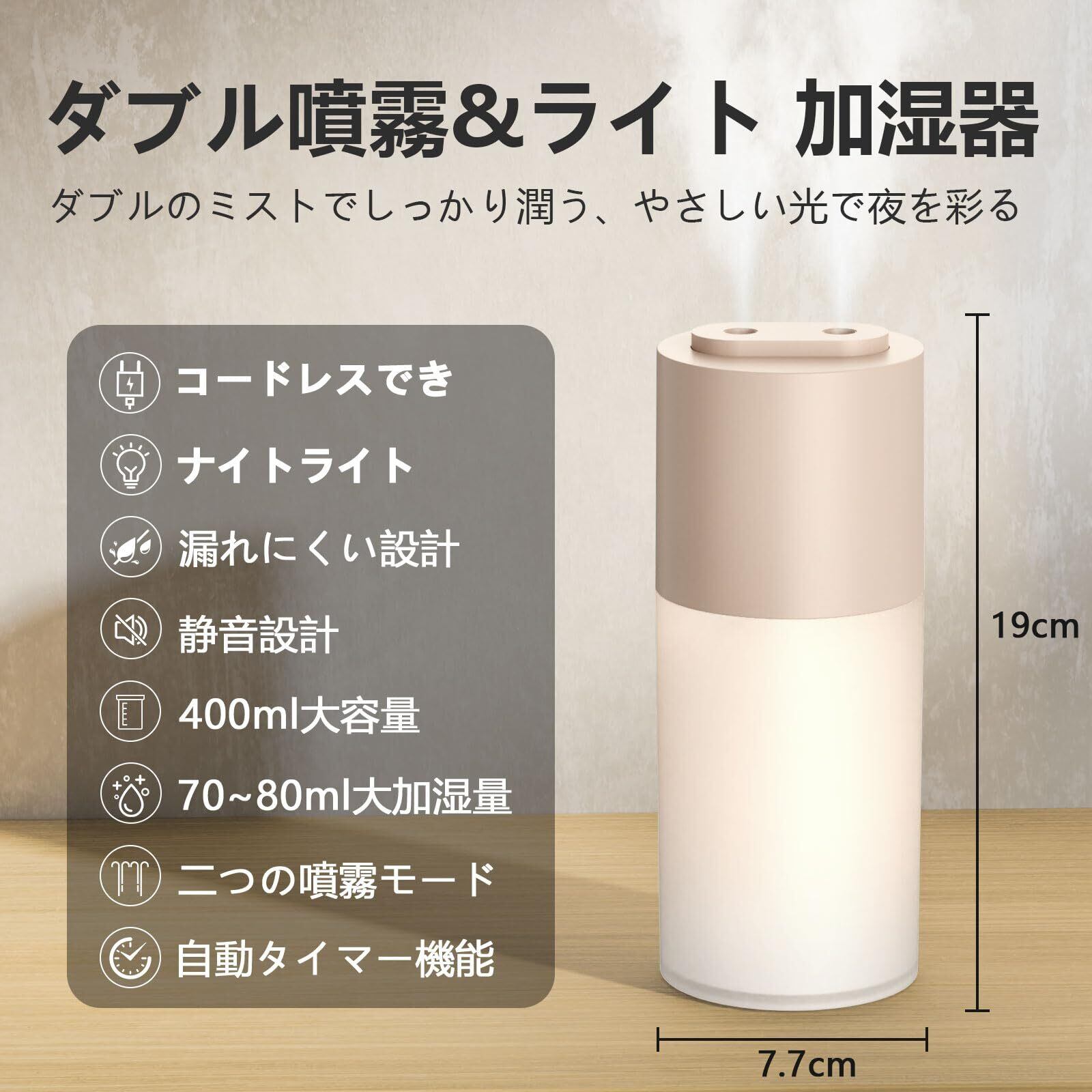 ViSSKO 加湿器 小型 コードレス 卓上加湿器 車 400ml-超音波 ナイトライト led 静音設計 自動停止機能 卓上噴水 排水 空焚き防止 コンパクト お手入れ簡単 デスク 部屋 オフィス 車 リビング 乾燥/花粉症対策ーベージュ
