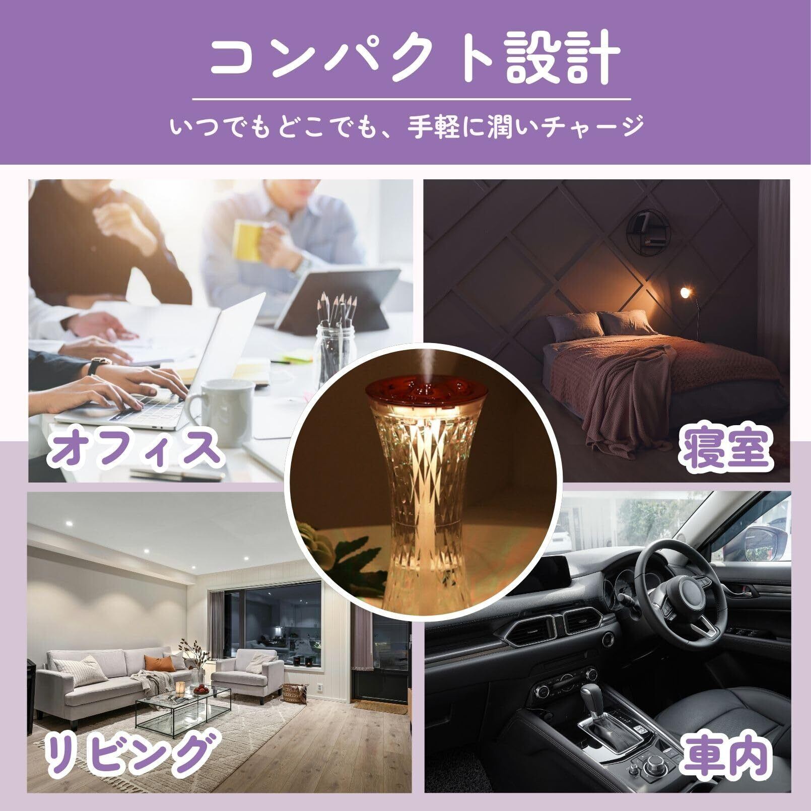 【CAWKAY 加湿器 クリスタル 7色ライト USB給電式 卓上 インテリア アロマセラピー 乾燥対策 花粉症対策 オフィス リビング 寝室】