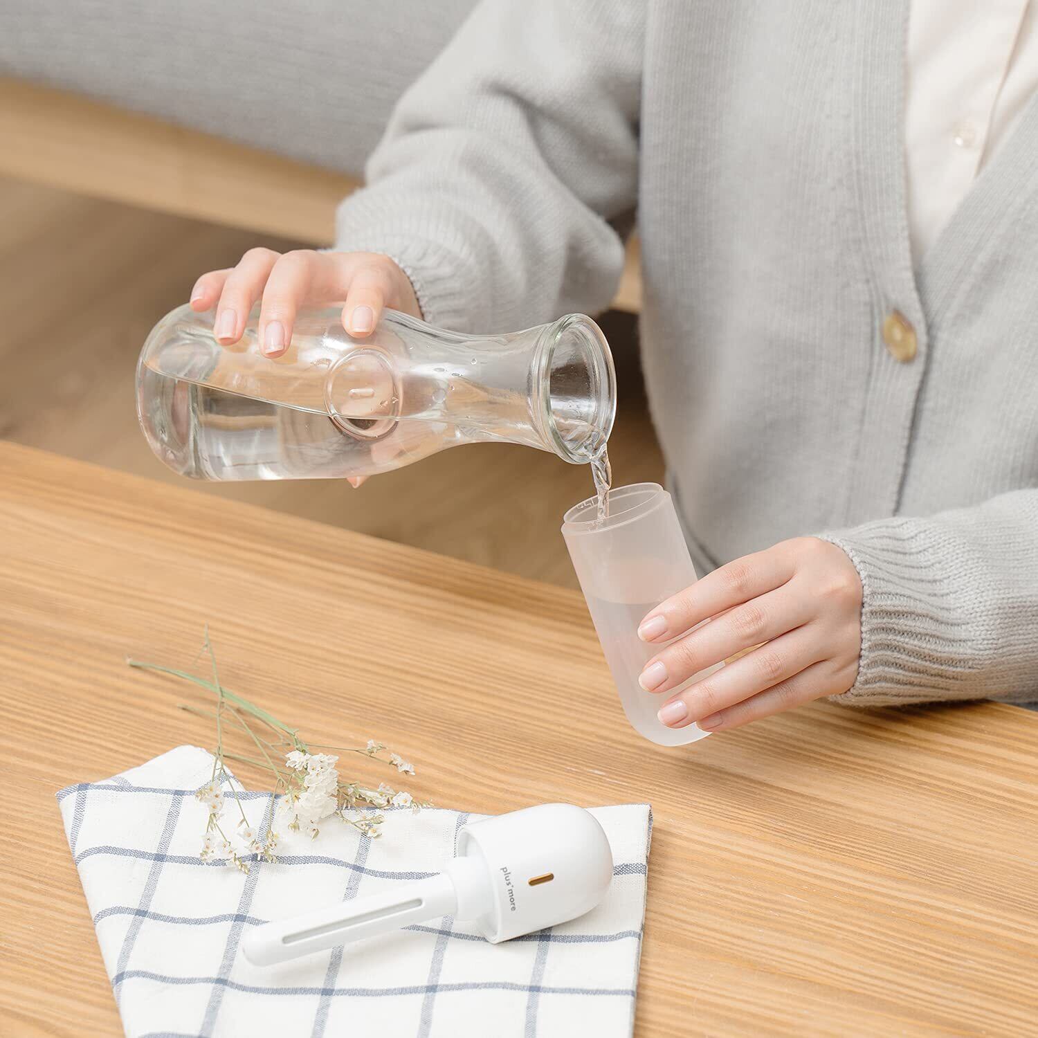 持ち運びに便利なポータブルサイズ。お仕事や学校、旅行先など、外出先で潤いが欲しい、なんて時に便利な加湿器。バッグに入れて楽々持ち運べます。コップやペットボトル、水を入れる容器さえあればどんな時でも加湿器に大変身。専用タンクもあるので、容器がない時も加湿器としてご使用いただけます。