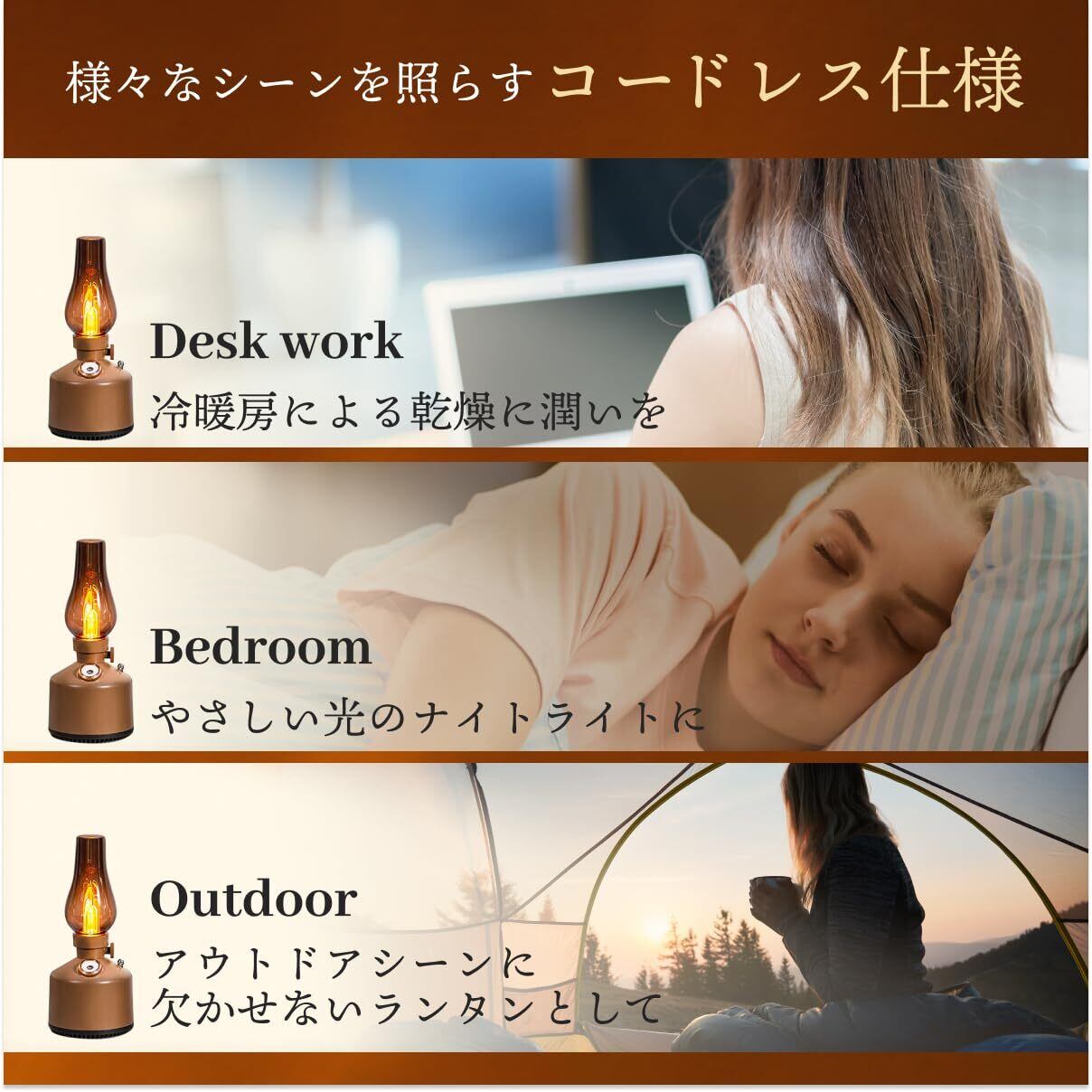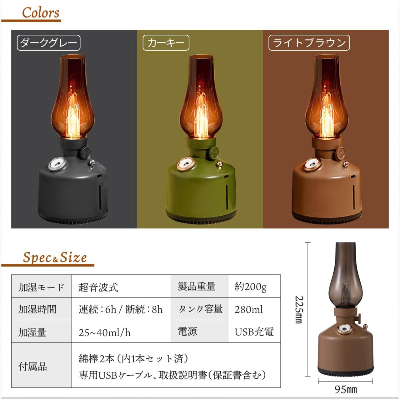 加湿器 小型 卓上 インテリア おしゃれ キャンプ 寝室 レトロランタン LED USB 充電式 静音 超音波式 (ダークグレー) MUM JAPAN ミラベンチャー