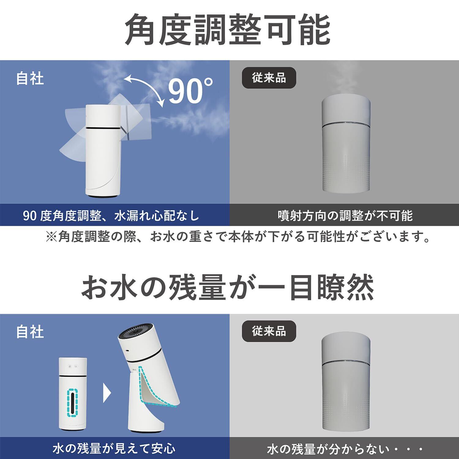 【90度角度調整可能】お好みに合わせて加湿の方向を調整し、様々な角度からうるおいを与えくれます。
