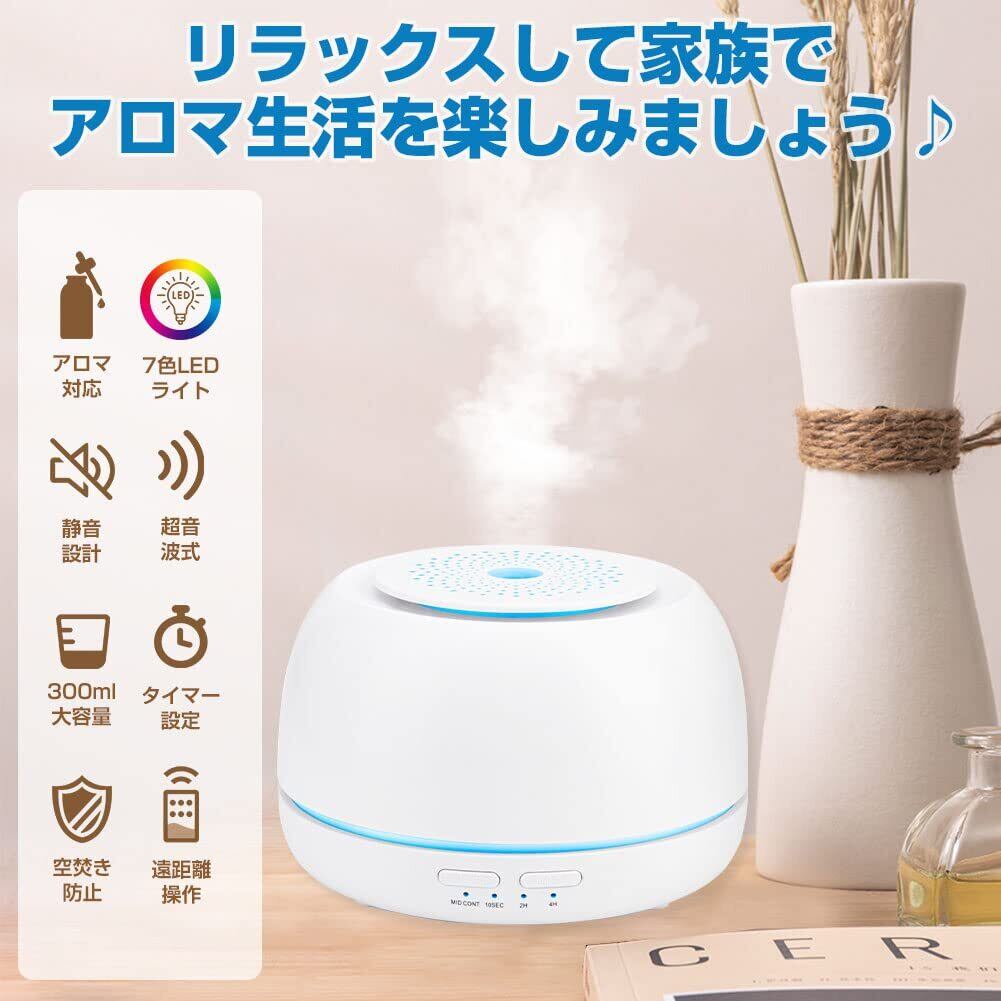 Besince ディフューザー 加湿器 アロマディフューザー 卓上 アロマ加湿器 超音波式加湿器 卓上加湿器 静音 タイマー LEDライト7色 リモコン付 乾燥対策 300ml オフィス用 家庭用 保湿 (ホワイト)