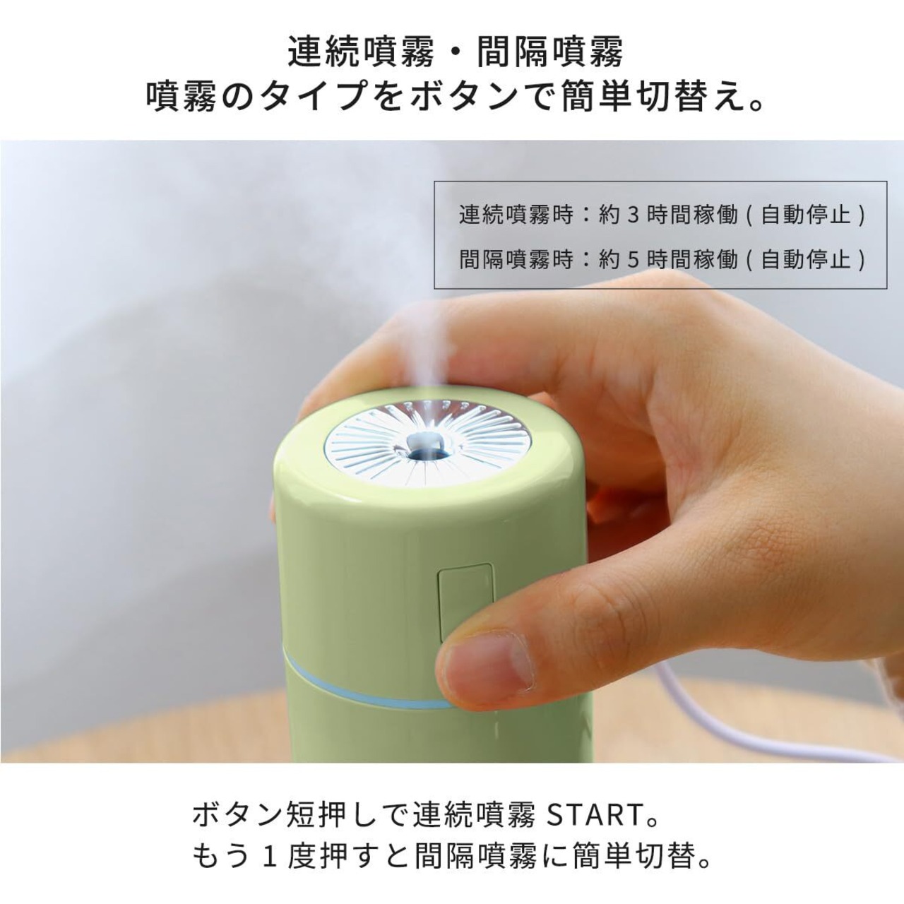 ボタン操作で連続噴霧、間隔噴霧、ランプ(7色グラデーション)の切替えOK。ボタンひとつの簡単操作。