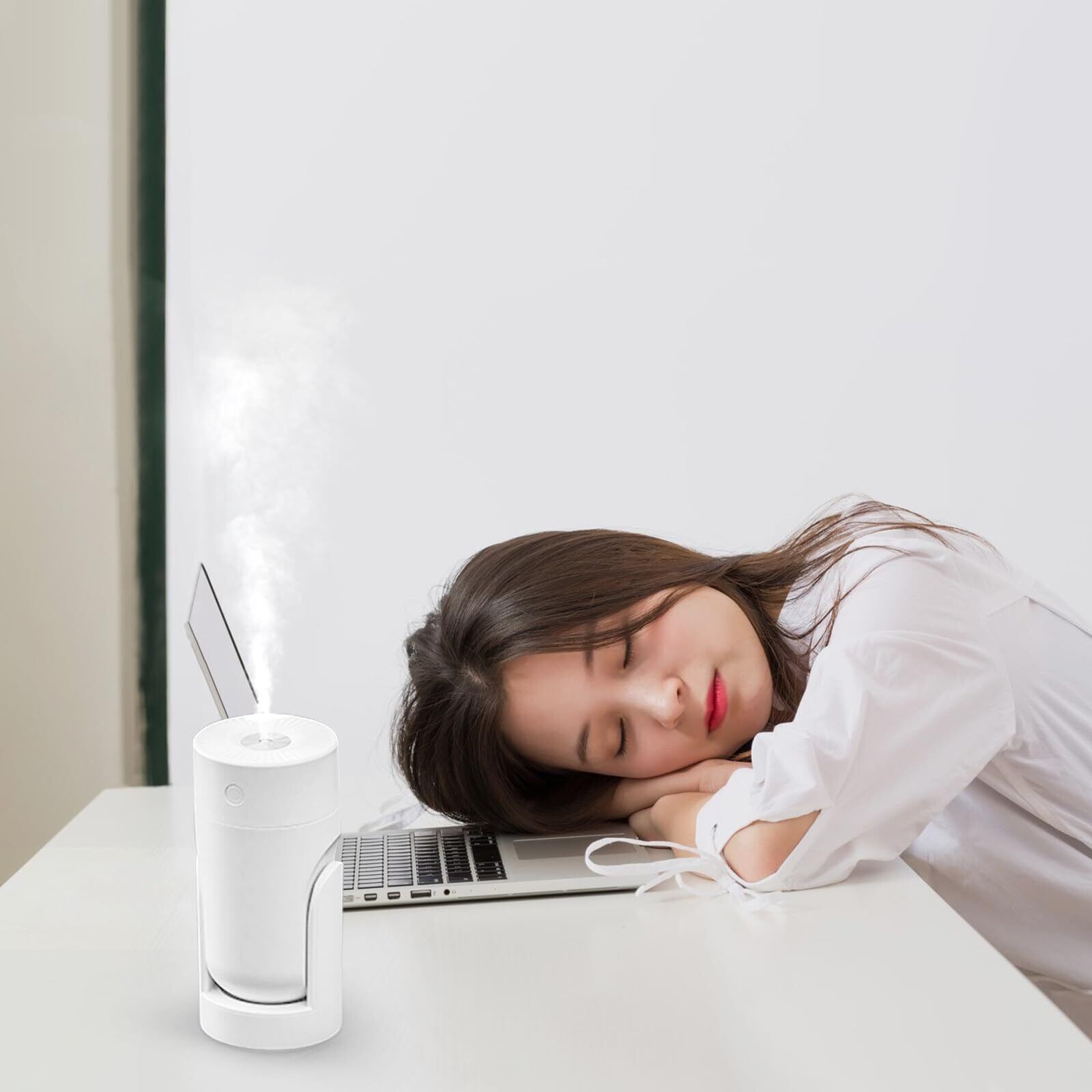 【卓上加湿器角度調整&2つ加湿モード操作簡単】卓上加湿器は上下角度まで手動調整可能です。連続・断続の2種類の加湿モードがあり、好みにより設定できます。また空焚き防止機能を備えています。電源ボタンを押すだけで加湿器が作動します。高齢者、子供でも簡単に操作できます。USB端子で気軽に使えるモノだと、リモートワーク中や運転中でも気軽に使えます。