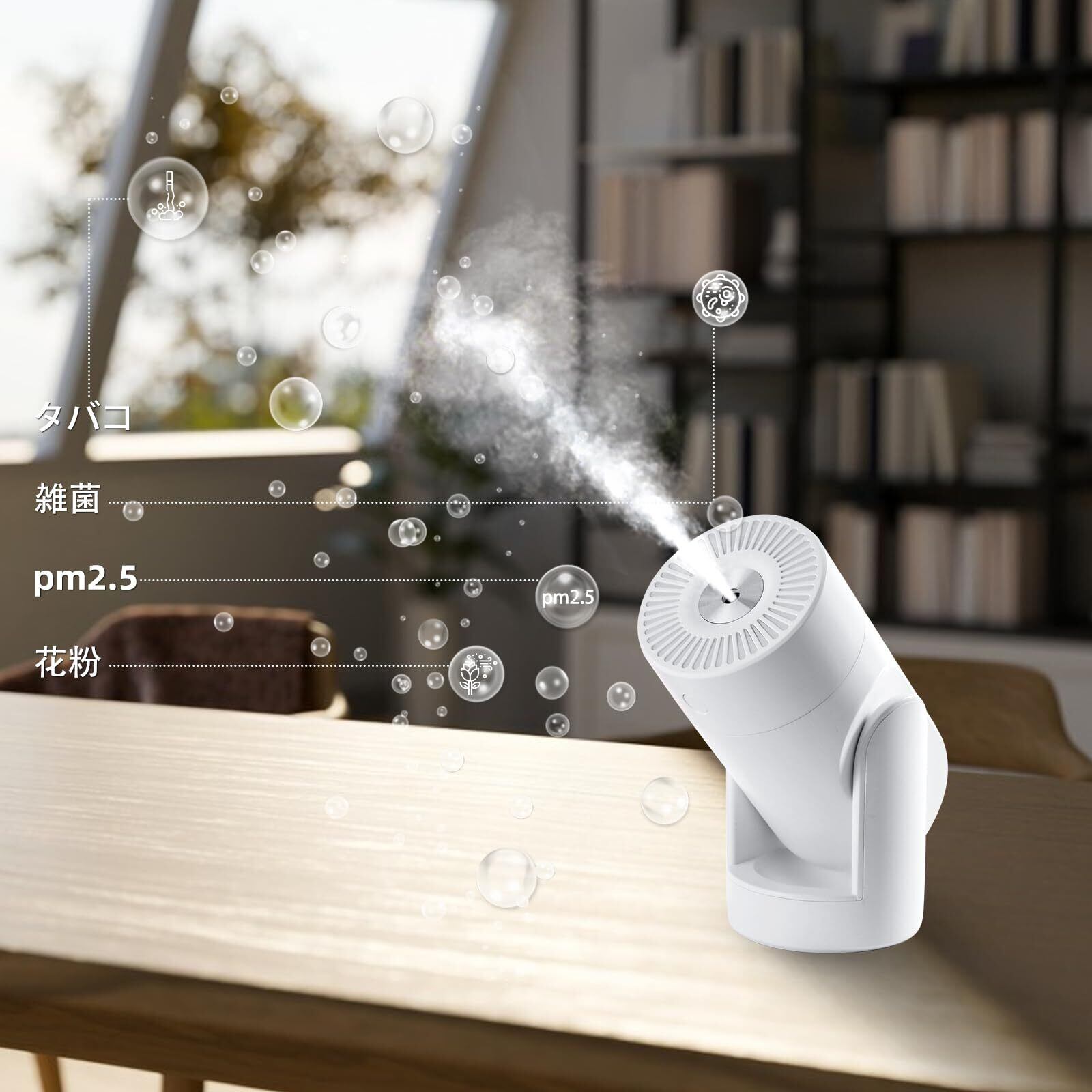 卓上 加湿器 小型 USB給電式 首振り 角度調整 超音波式 静音 空焚き防止 おしゃれ LEDライト アロマ対応 乾燥 花粉症 風邪対策 空気清浄機 自宅 オフィス 車用加湿器 (ホワイト)