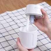 とうとうこんな小さな上部給水加湿器が登場。デスクやベッドサイドでも、どこでも気軽に加湿できます。はずみで倒してしまっても、密封性の高い蓋により中の水がこぼれにくくなっている加湿器です。また、タンクに施された抗菌効果を実現。ずっときれいなミストをお届けします。