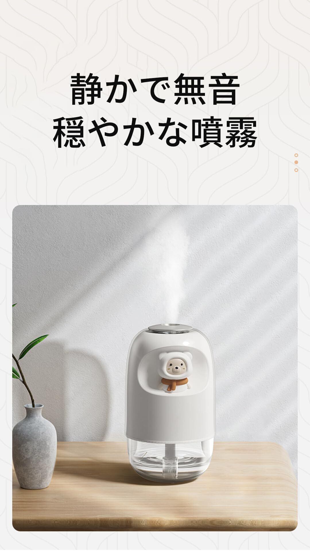【繊細な噴霧と綺麗なLEDライト】この卓上加湿器は最新の技術を基づいた超音波式で、タンク内の水を約5μmの霧にして噴出し、繊細で細かいの水霧はスキン、唇の乾燥に大活用!小型加湿器は呼吸LEDライト効果機能があります、作動中に綺麗なライト効果がします。7の色は呼吸のようにゆっくり変換して、とっても綺麗です。