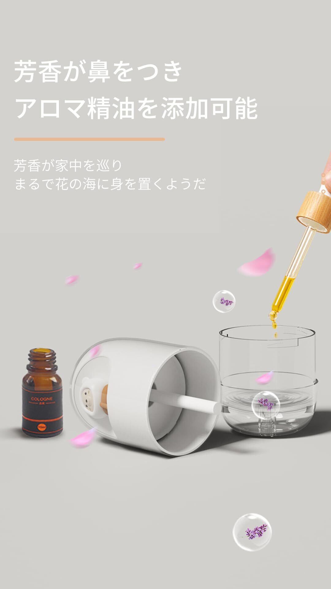 【完全に静音!150ml容量】作動中にはほぼ雑音もありません、耳を近く近付かないとなんも聞こえないほどの静音さ!水槽容量は150ml、噴霧量:20-40ml/s、一回の水入れは最大7時間使用可能!(点噴モード)、一晩中に香りと潤いを同時に楽しめる!