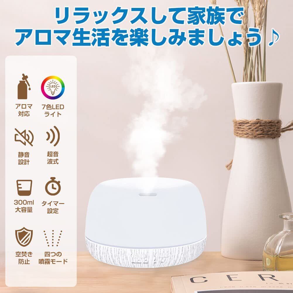 Besince ディフューザー 加湿器 アロマディフューザー 卓上 アロマ加湿器 超音波式加湿器 卓上加湿器 静音 タイマー LEDライト7色 ウッド (浅いウッド)