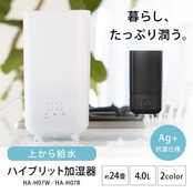 ヒーターで温めた水を超音波で超微細ミストにして噴霧する「ハイブリッド加湿器」です。