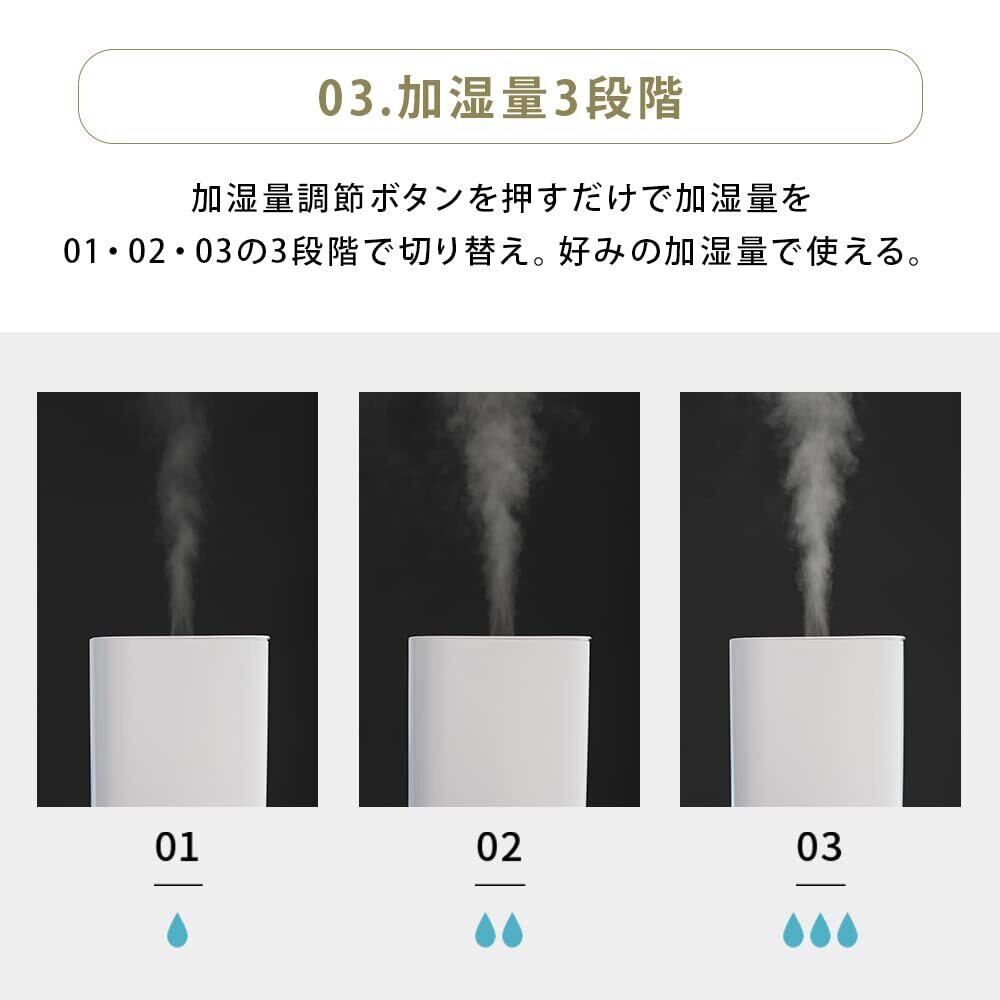 最大加湿量:約350ml/h、連続使用時間(強)超音波/約14時間、ヒーター/約11時間、切タイマー:2時間/4時間/6時間/8時間