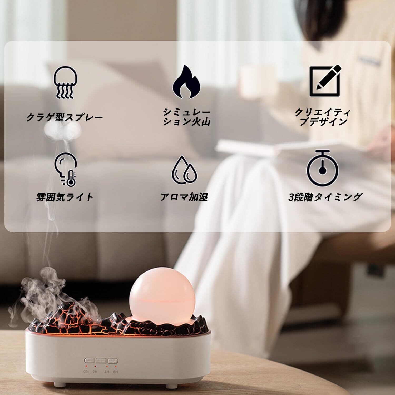 MFDXWCV 加湿器 小型 アロマ ディフューザー 3色LEDライト 超音波 火山加湿器卓上 大容量 おしゃれ 静音 乾燥対策