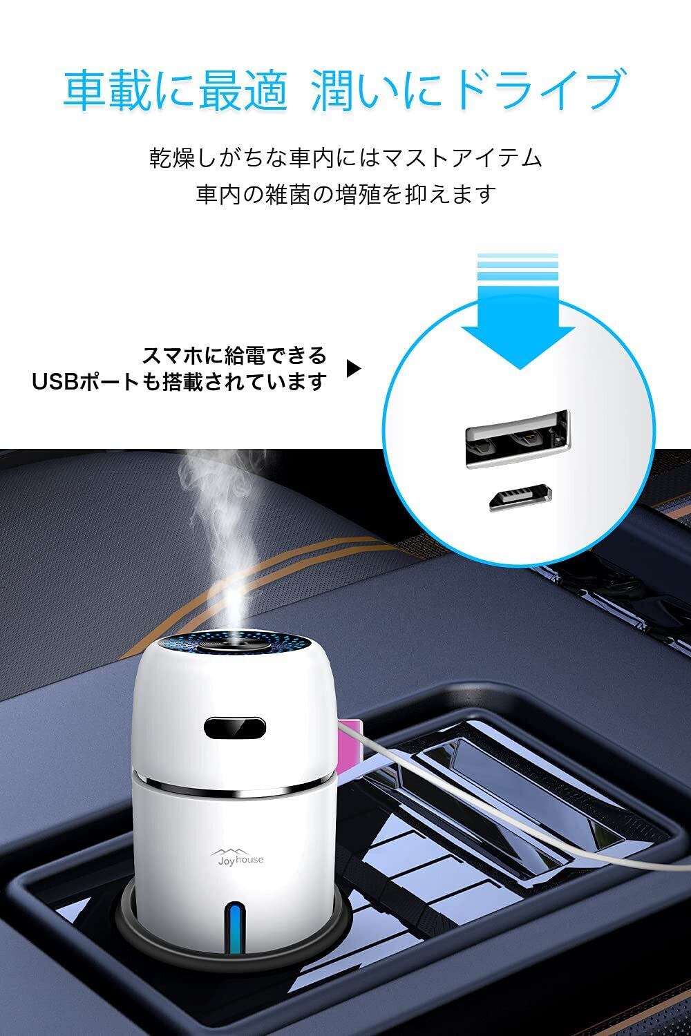 【USB給電&車用加湿器】USB給電口なので、コンピューターやモバイルバッテリーなどから電源を取れて、とても便利です。シガーソケットに差し挿むだけで車で使えます。車内たっぷりミスト加湿により、車内の空気を清浄し、静電気の発生を防止し、埃の飛散を防ぎ、鼻や喉の乾燥を防ぎます。出張、旅行車などに置いて適用です。