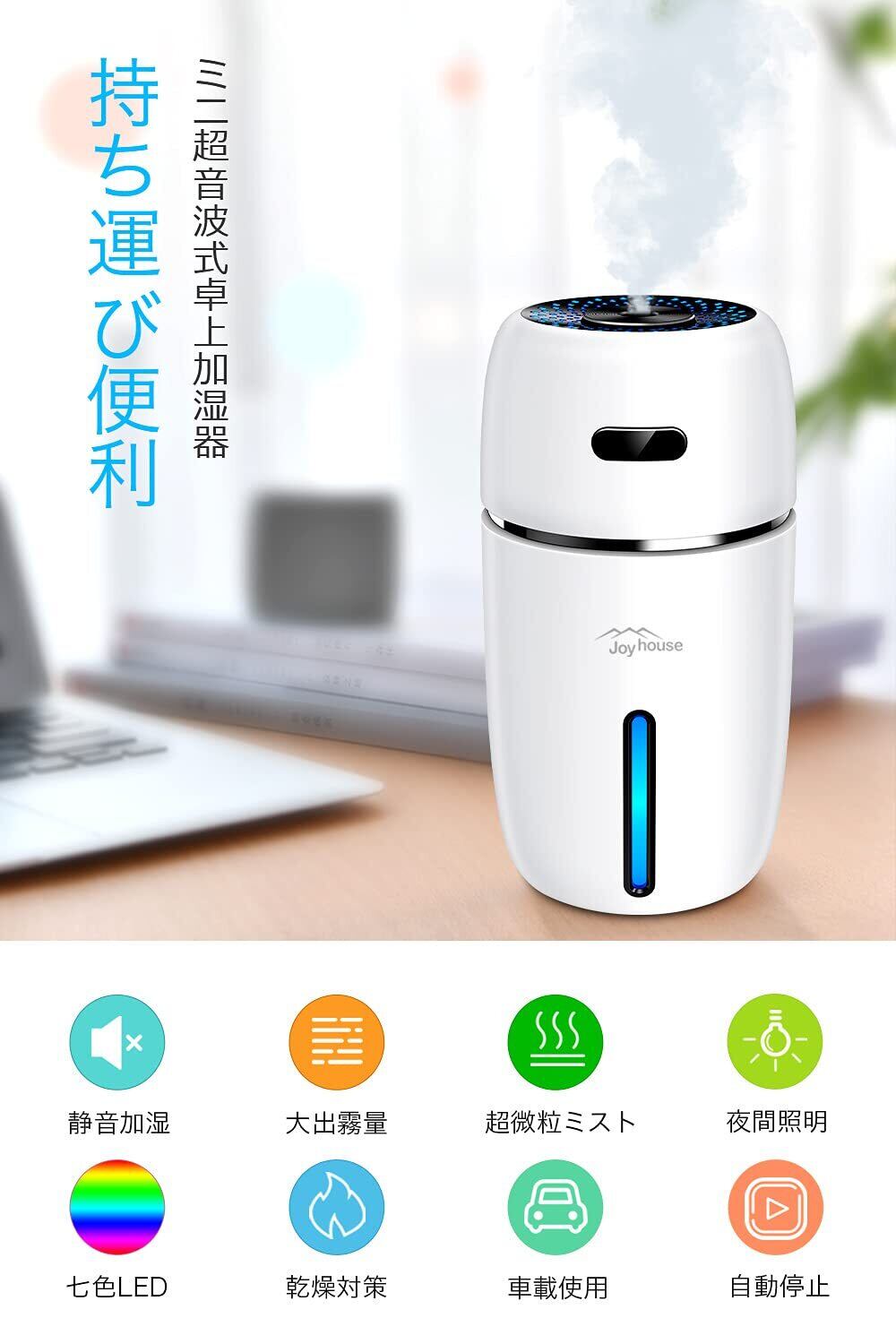 加湿器 卓上 超音波式 デスク 小型 車用 七色LED USB 空焚き防止 静音 加湿機 オフィス 寝室 アロマ 次亜塩素酸水 お手入れ簡単 乾燥防止 花粉対策 大容量 200ML クリスマス/元旦/新年 プレゼント (ホワイト)
