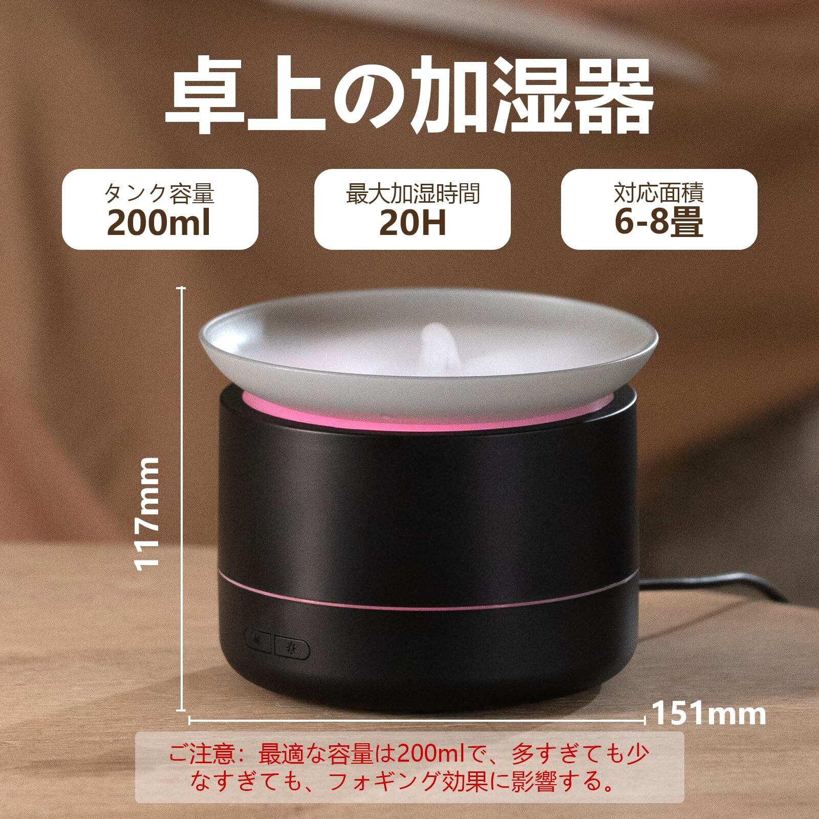 ViSSKO 加湿器 小型 卓上 アロマ 200ml 海霧 超音波 アロマ対応 LEDライト7色 卓上加湿器 自動停止機能 卓上噴水 排水 空焚き防止 コンパクト お手入れ簡単 デスク 部屋 会社 リビング 乾燥/花粉症対策-ブラック