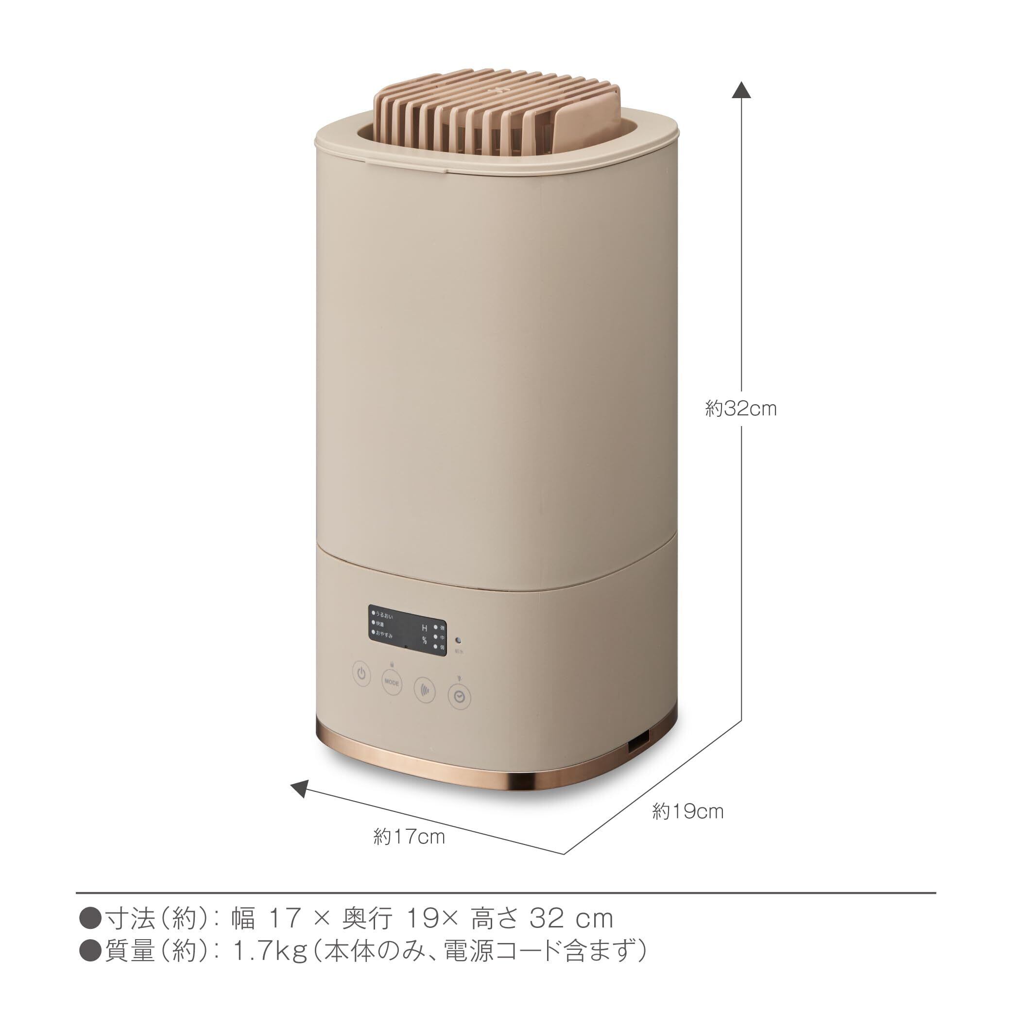 【寝室・リビング兼用加湿器】ドウシシャ 加湿器 スチーム式 容量3L 木造7畳 プレハブ11畳 加湿量400ml/h 加湿切替3段階 連続加湿時間7時間 カンタン給水 オート運転 Korobaan 400S ベージュ