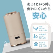 寝室・リビング兼用の4つのこだわり。①独自の吸盤構造で倒れにくい。横からの力に強く、倒れにくいから安心です。②沸騰させたキレイな蒸気D清潔。沸騰されたキレイな蒸気でお部屋を潤します。③床が濡れにくい。超音波式でよくある床が濡れる現象が起こりにくい、スチーム式を採用。④選べる3つのオート運転。おやすみ、快適、うるおいの3つのオート運転でお好みにあわせた運転が可能。