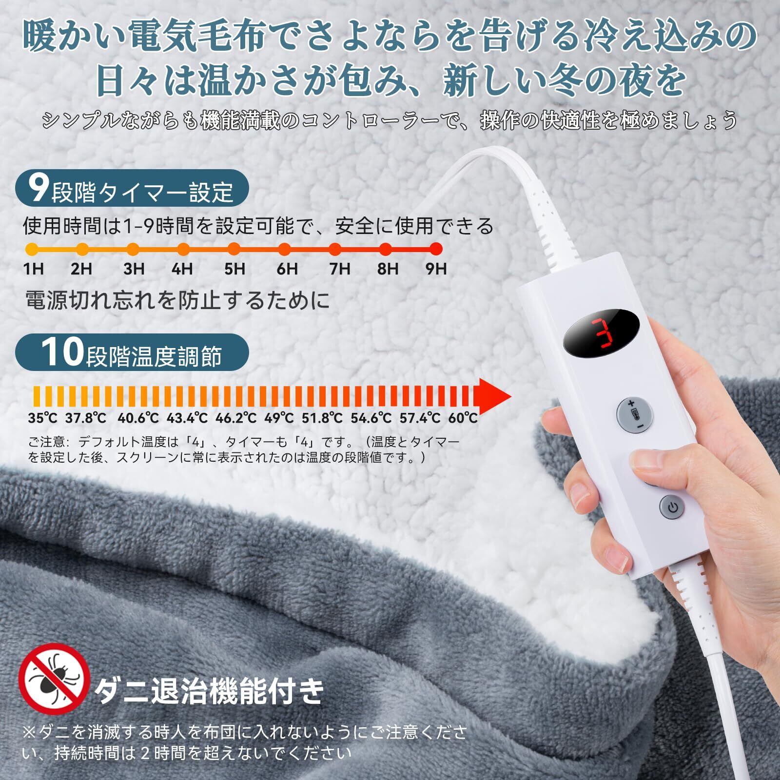 GOHHME 電気毛布 掛け敷き兼用 188×130cm 電気毛布 掛け【大きいサイズ&10段階温度調整& 9つタイマー機能 】 フランネル ふわふわ 電気ブランケット丸洗い可 3分速暖膝掛け4h自動電源オフ ソファ ブランケット過熱保護 防寒対策 抗菌 防臭 ダニ退治 冷え予防 暖かい 冬用 冷房対策 暖房器具 PSE認証済み