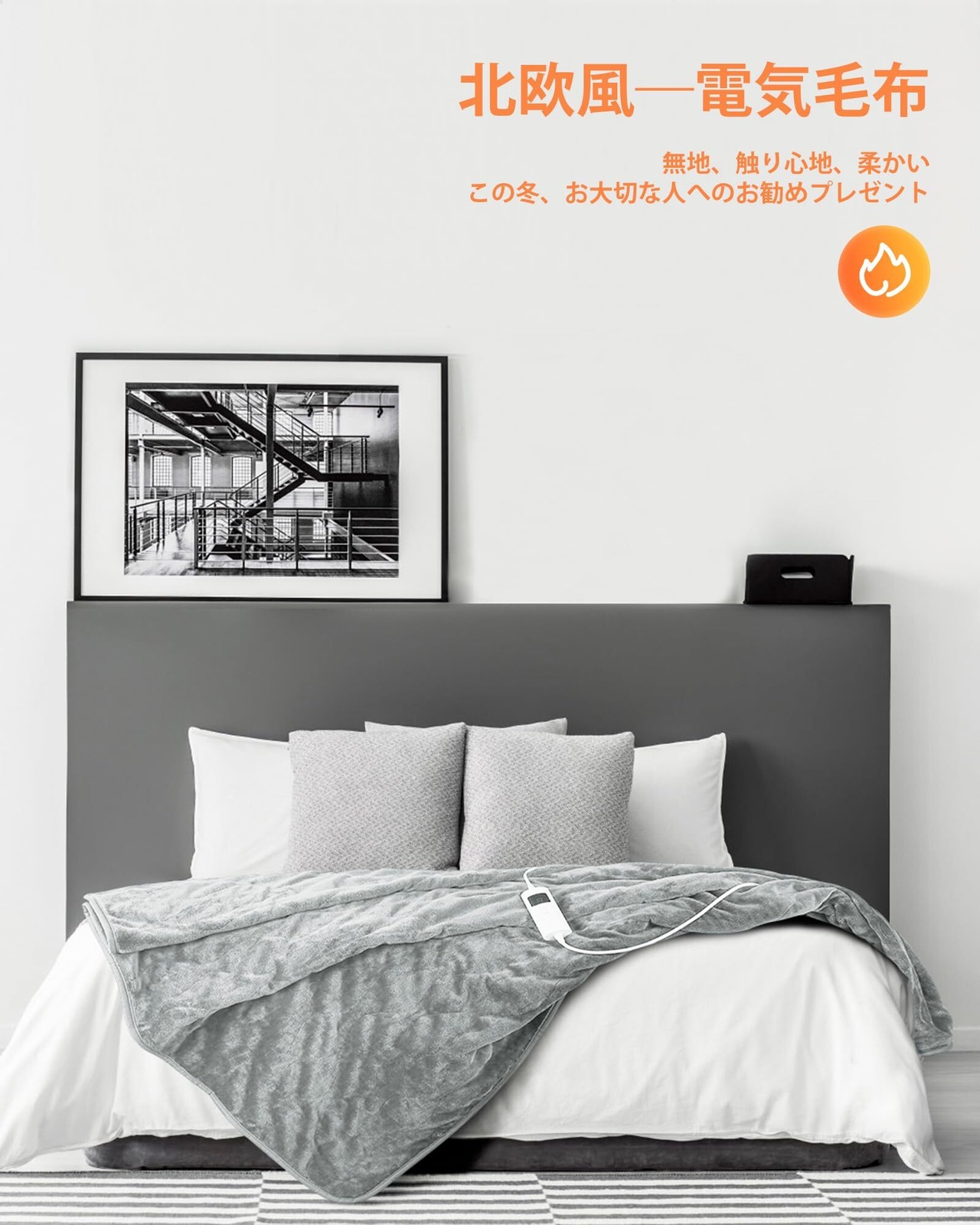 電気毛布 掛け 電気ひざ掛け 1-9時間タイマー 6段階温度調整 152x127cm 電気ブランケット フランネル シングル 厚手 省エネ 丸洗い 過熱保護 PSE認証済み 暖房器具 冬ギフト