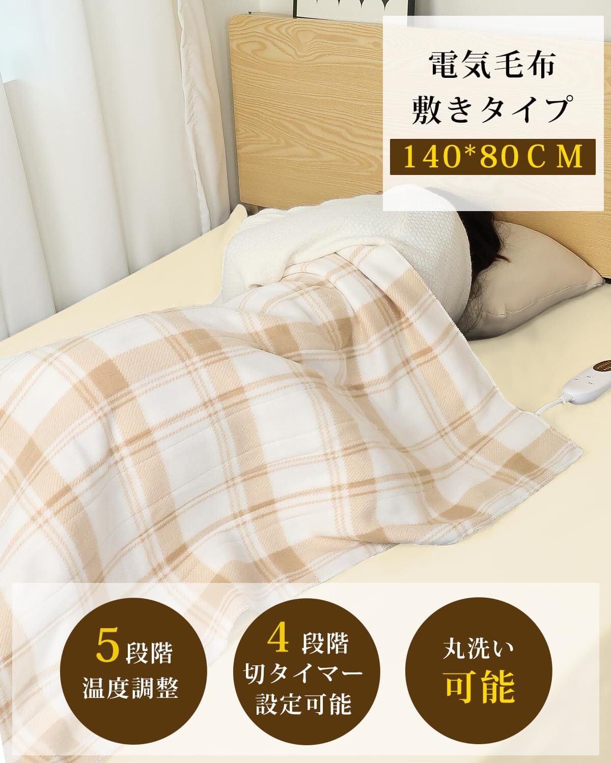 【丸洗い可能でお手入れ簡単】電気毛布なのに、丸洗い可能!本体から電源コードを抜いて、じゃぶじゃぶお洗濯できるからうっかり汚しても安心。自宅で丸洗いができるので、いつも清潔にご使用いただけます。ご注意:①コントローラーを外してください。②洗濯機をご使用の際は、洗濯ネットに入れてください。③ドラム式洗濯機、乾燥機はご使用いただけません。