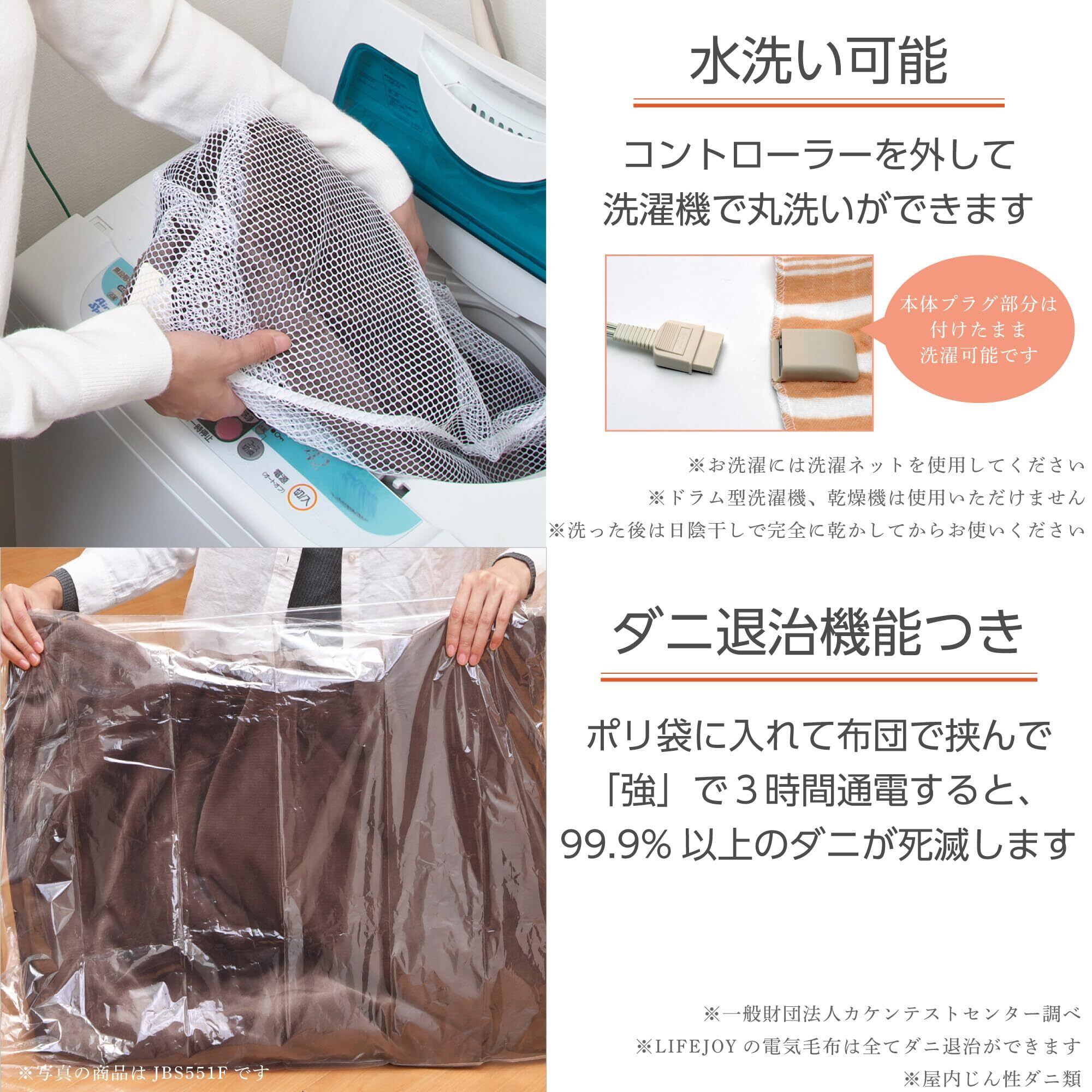 ライフジョイ 電気毛布 掛け 敷き 兼用 シングル ブラウン 188cm×130cm 洗濯可能 8時間OFFタイマー機能付 室温センサー付 頭寒足暖 やわらか JBK551G-B